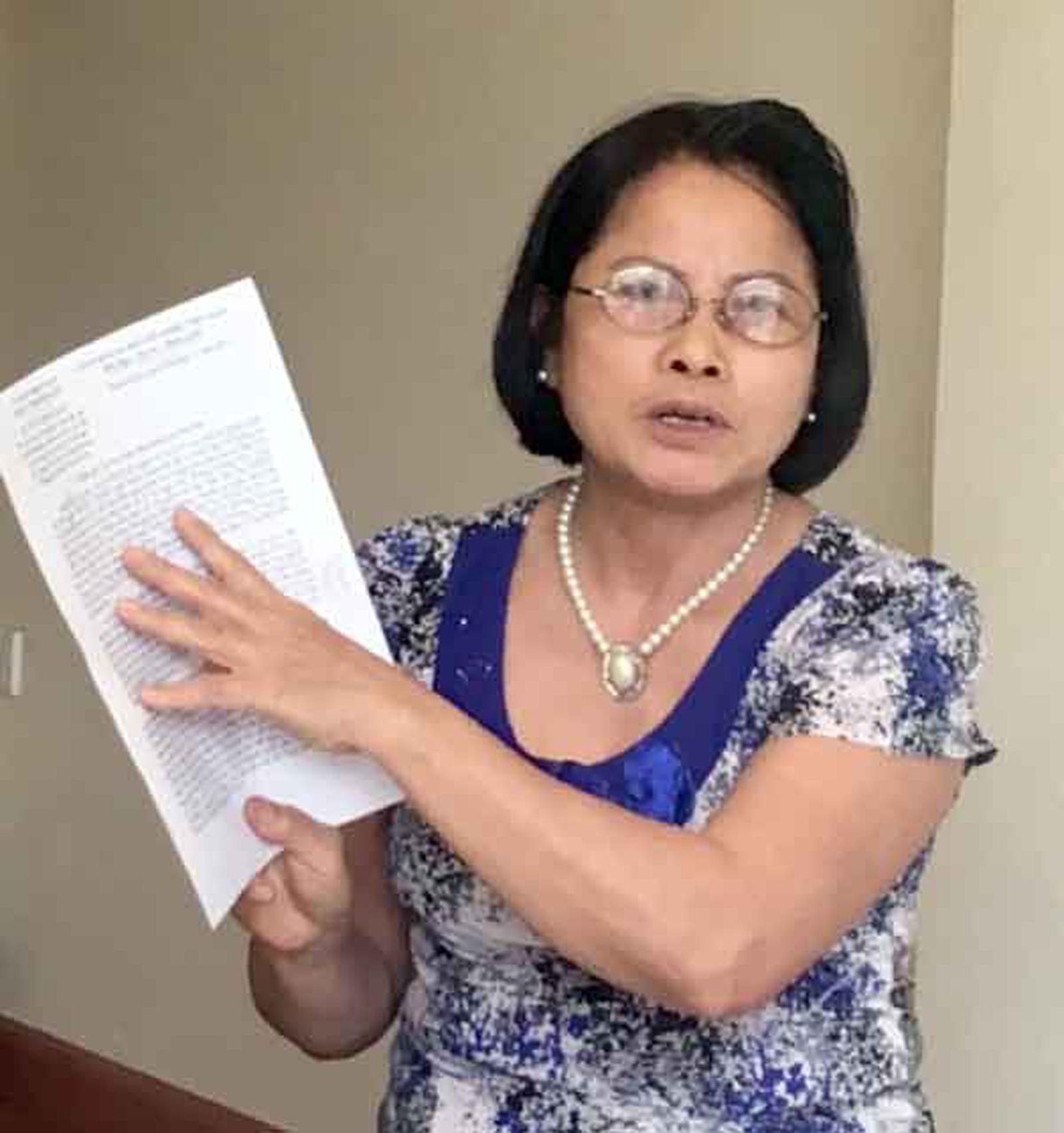 Bà Tuyên đang trình bày những bức xúc của mình với phóng viên
