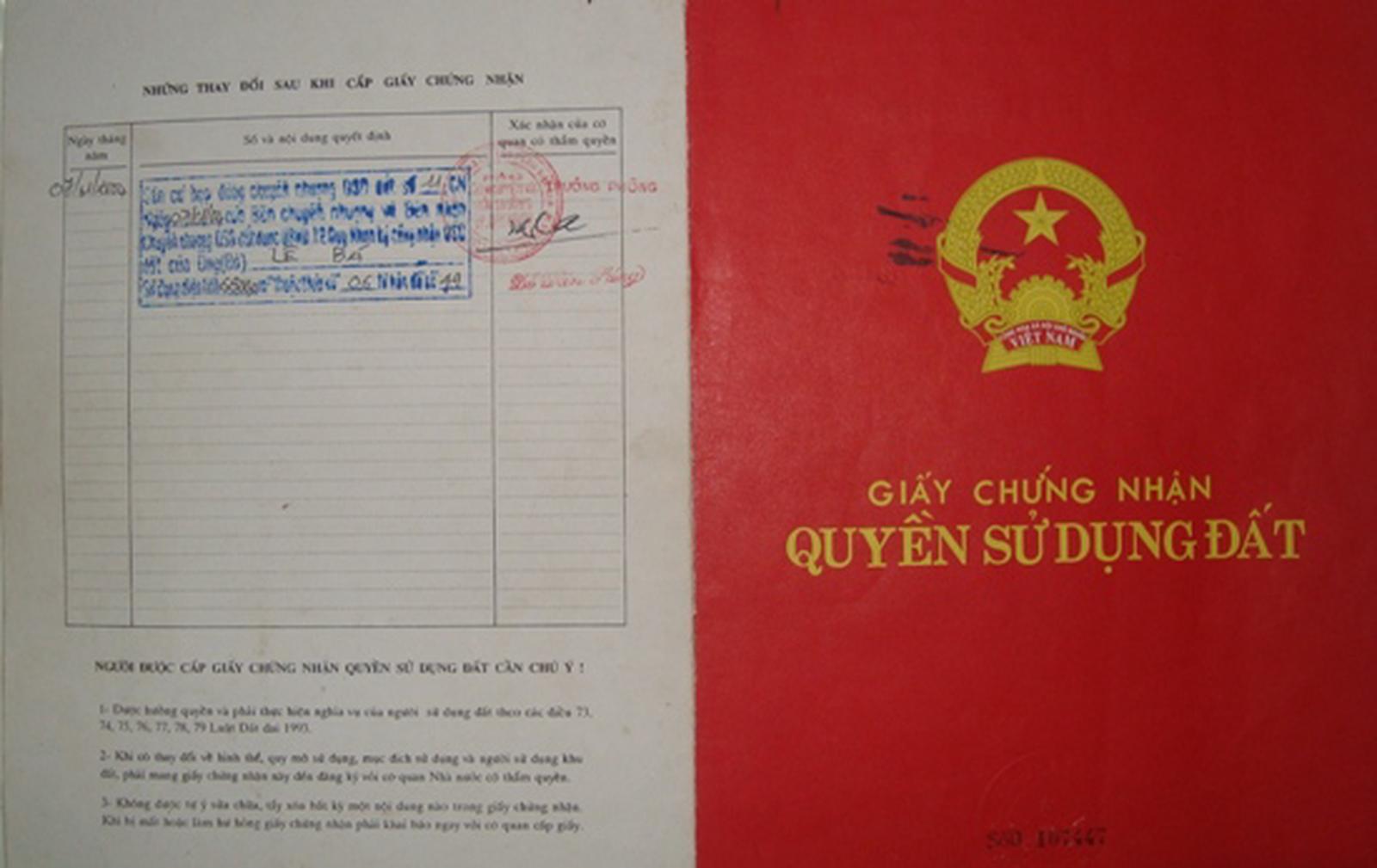 “Sổ đỏ” được bà Thương chuyển quyền cho ông Lê Bá ngày 07/01/2004. Ảnh: Quốc Trung