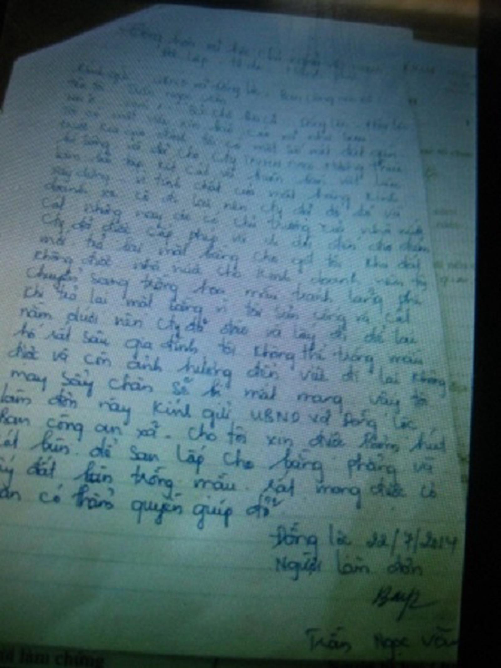 Theo Công an xã Đồng Lộc thì ngày 22/7/2014, ông Trần Ngọc Văn làm đơn gửi UBND, Công an xã xin được bơm hút cát bùn để san lấp mặt bằng khu đất của gia đình ông do Cty Mai Hương trả lại. Sau đó, chính quyền và Công an xã họp và thống nhất chủ trương này. Tuy nhiên, theo Chủ tịch UBND xã Đồng Lộc thì chính quyền chỉ cho ký hợp đồng 1 năm cho Cty Mai Hương thuê khu vực đất này để trồng cây hằng năm. Khi hết thời hạn hợp đồng thì Chủ tịch xã không ký lại nữa. Hiện, khu đất bãi tập kết này thuộc sự quản lý của xã, chứ không phải của ông Văn hay Cty Mai Hương.
