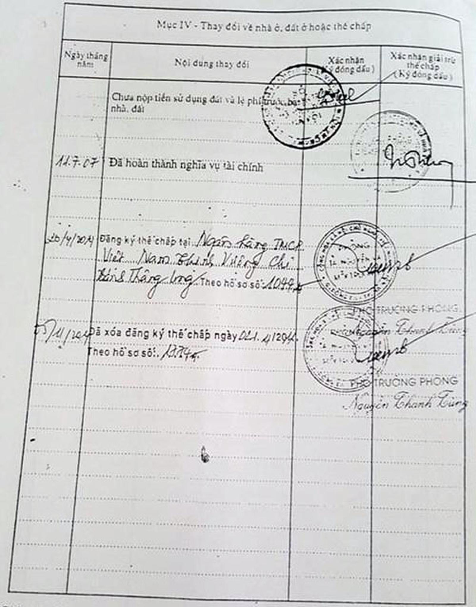 Tháng 4/2011, gia đình bà Hằng cũng đã đăng ký thế chấp ngôi nhà trên tại Ngân hàng TMCP Thịnh Vượng - Chi nhánh Thăng Long, đến tháng 11/2011 đã xóa đăng ký thế chấp. Giao dịch bảo đảm tại Phòng Tài nguyên và Môi trường quận Đống Đa do Phó Trưởng phòng Nguyễn Thanh Tùng ký xác nhận.