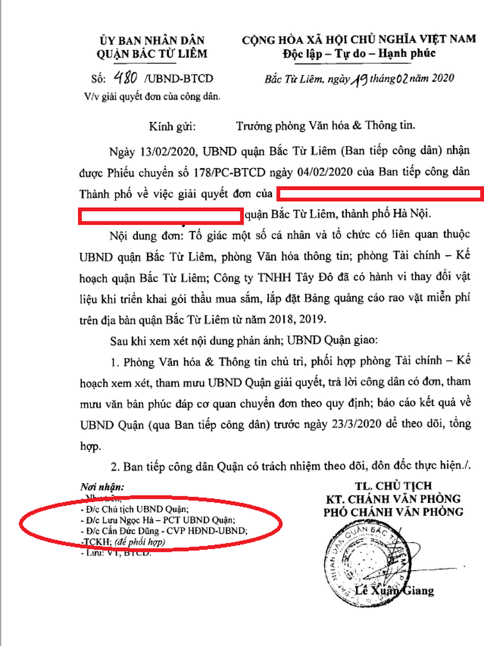 Tuy nhiên, đến tận ngày 04/2/2020, Ban Tiếp công dân Hà Nội mới có Công văn số 178/PC-BTCD chuyển văn bản của công dân tới UBND quận Bắc Từ Liêm.