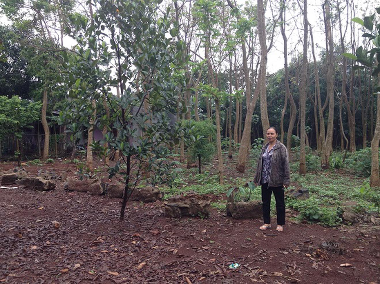 Bà Trịnh Thị Tươi bên phần đất bị UBND thị xã Long Khánh ban hành quyết định thu hồi trái luật. Ảnh: Chu Tuấn