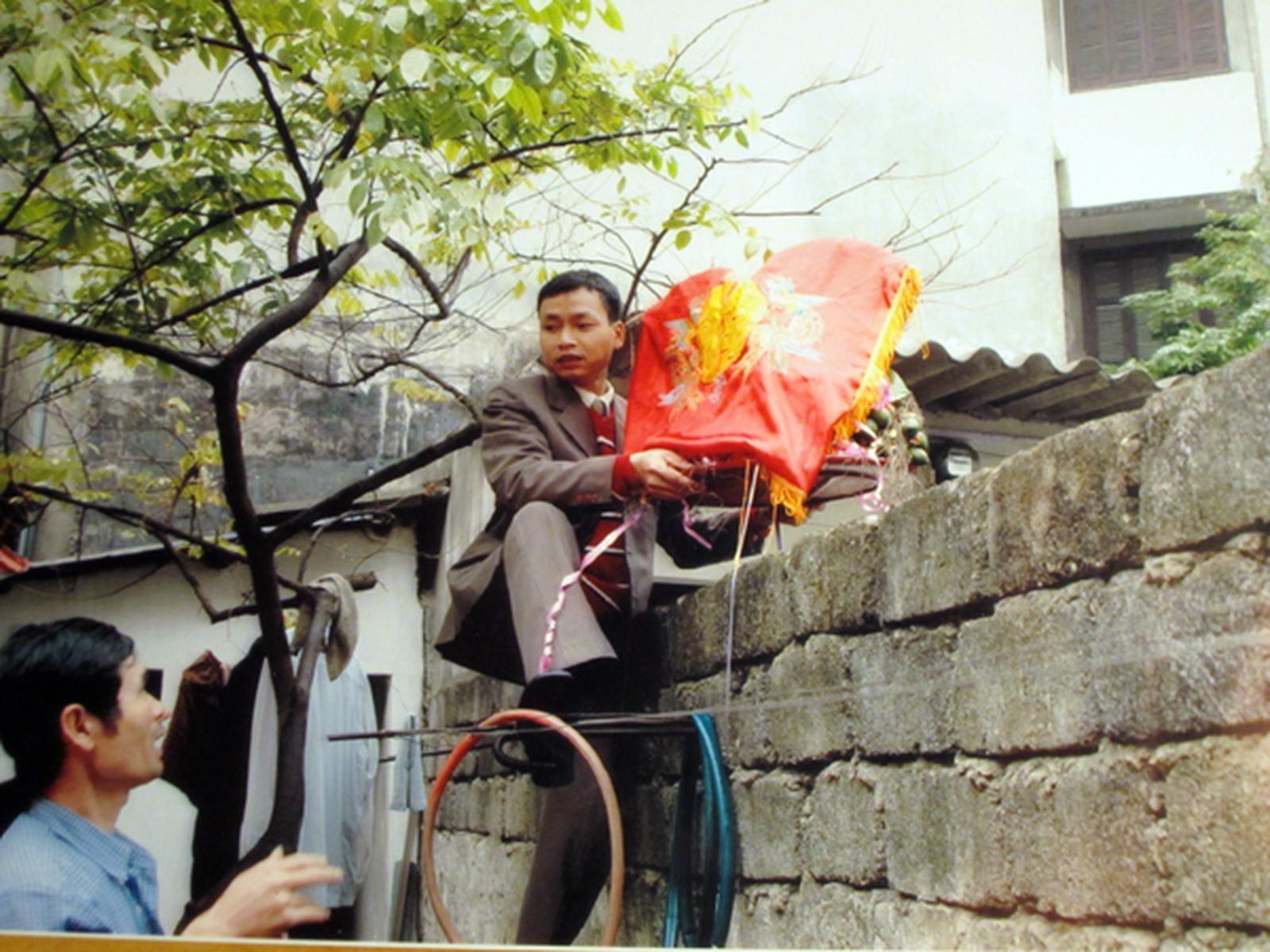 Đám cưới cả 2 cô con gái đều phải đón lễ qua tường nhà hàng xóm như thế này. Ảnh: Ngân Hà