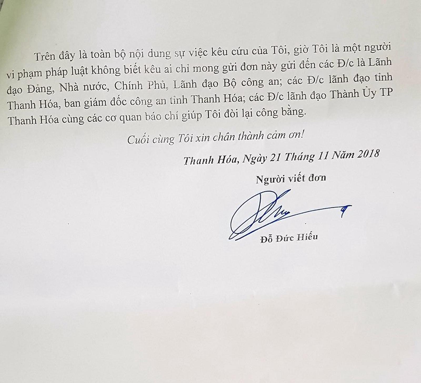 Đến cuối tháng 10/2018, tôi được gọi đến Cơ quan Công an điều tra Công an TP Thanh Hóa...