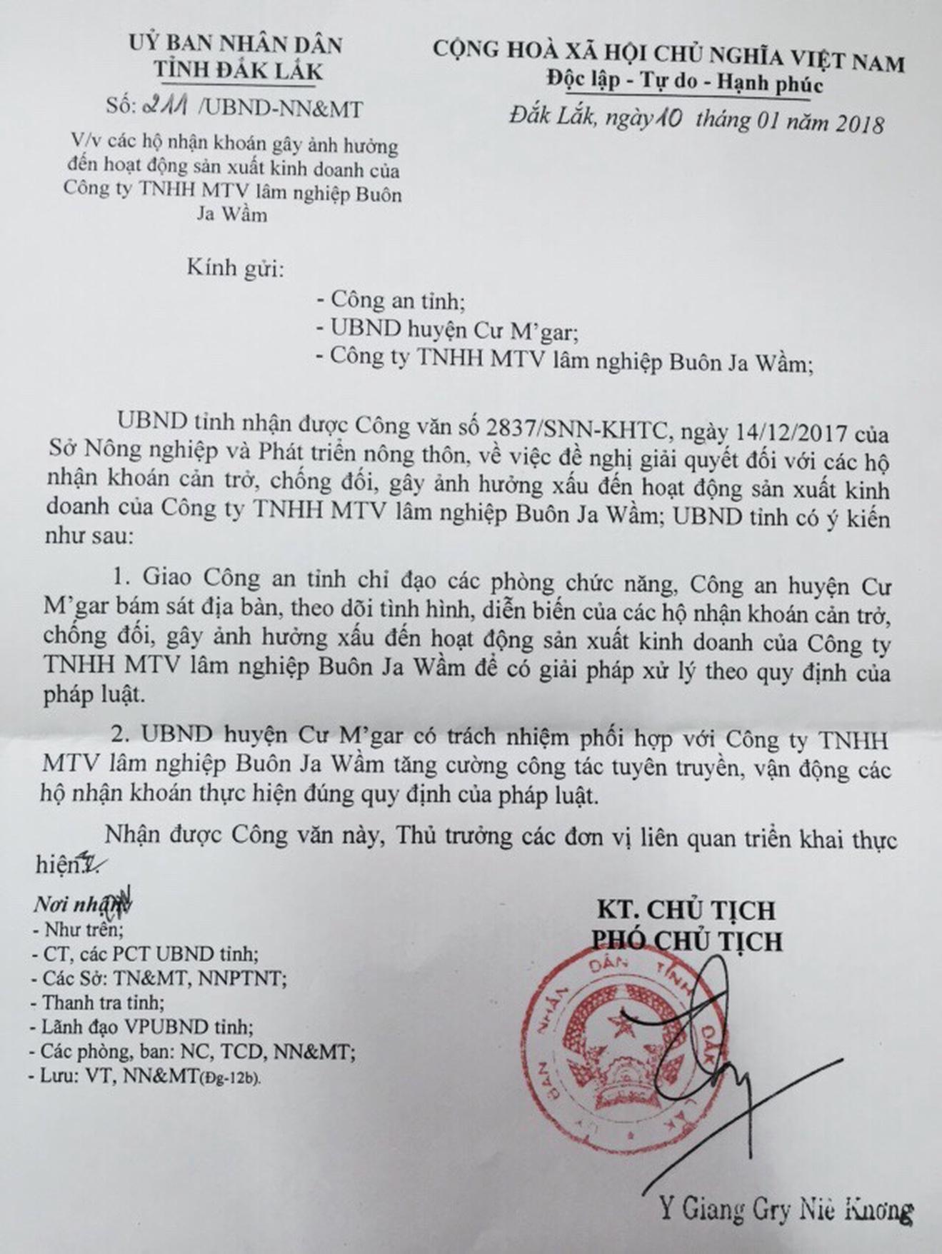 Công văn của UBND tỉnh Đắk Lắk