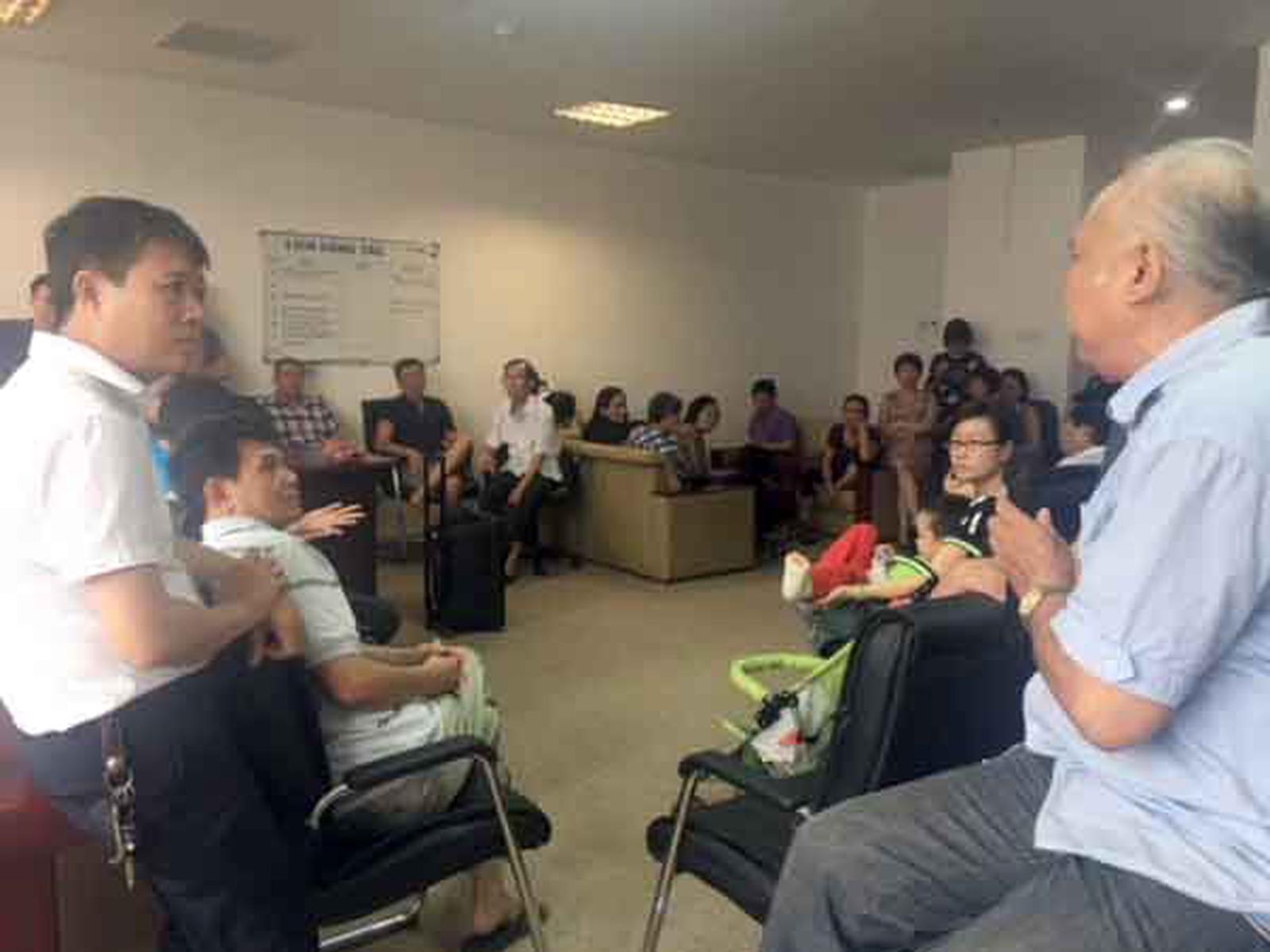 Một buổi họp của tập thể các cư dân phản ánh sự bức xúc trước sự vô cảm của chủ đầu tư. Ảnh: ĐQ