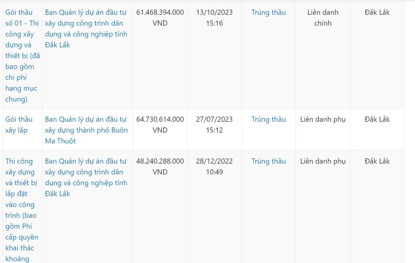 Theo tìm hiểu, doanh nghiệp này chủ yếu tham gia đấu thầu tại các gói thầu ở quê nhà Đắk Lắk. Và thật “mát tay” khi Công ty Nam Nguyên “ẵm” loạt gói thầu có giá trị rất lớn, dù ở vai trò nhà thầu độc lập hay với tư cách liên danh (chính-phụ).