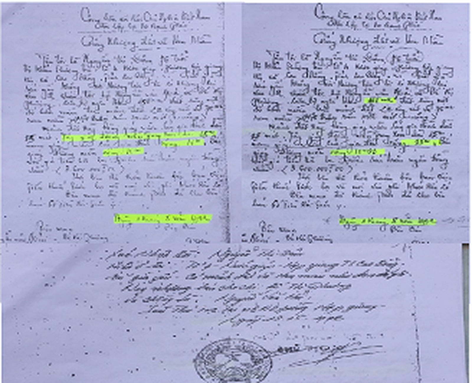 Hai giấy nhượng đất và hoa mầu có diện tích và cạnh thửa khác nhau cùng được UBND phường xác nhận ngày 12/5/1992. Ảnh: TH
