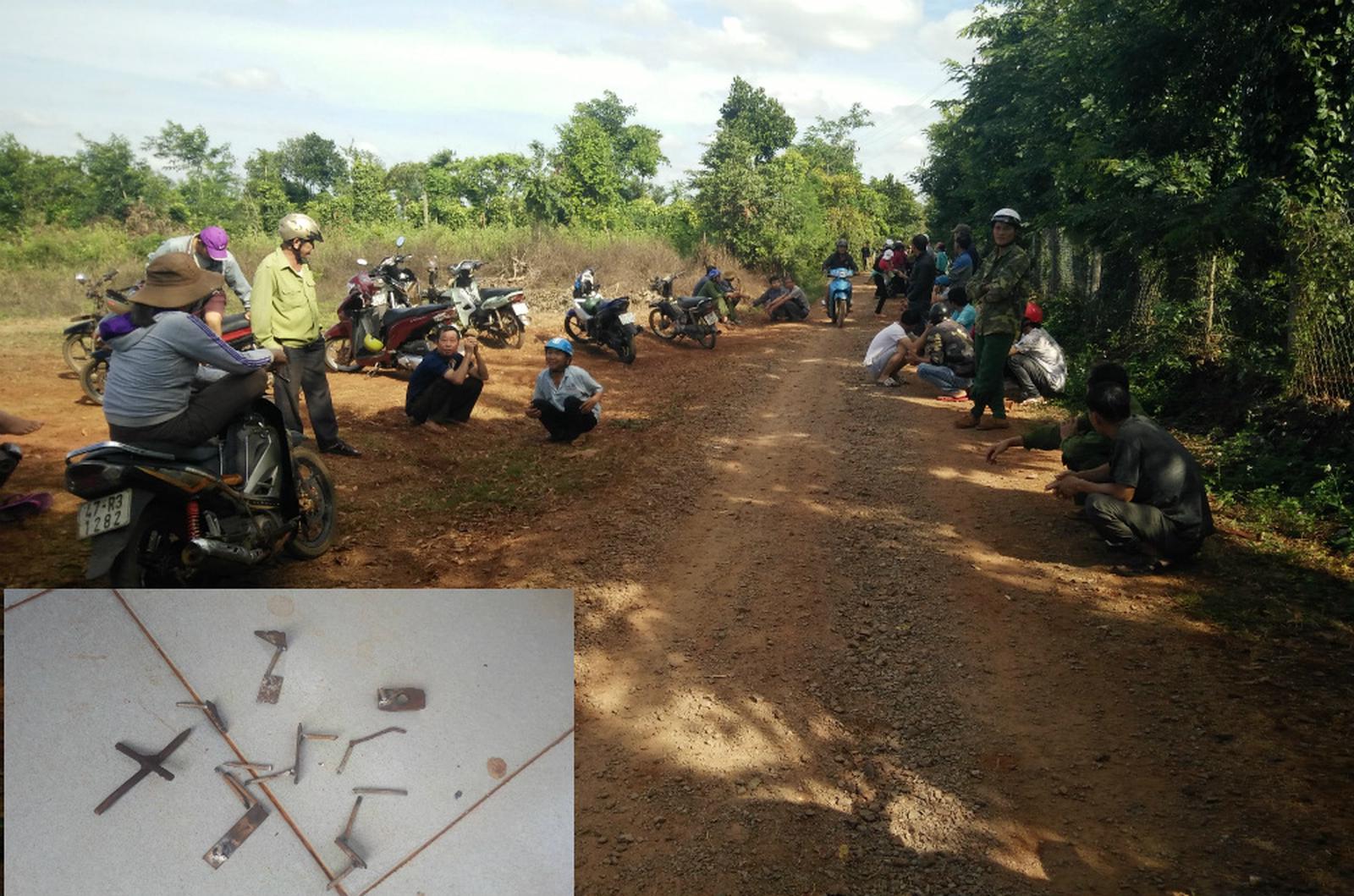 Các đối tượng chống đối rải đinh trên đường “bẫy” đoàn cưỡng chế. Ảnh: Nhóm PV
