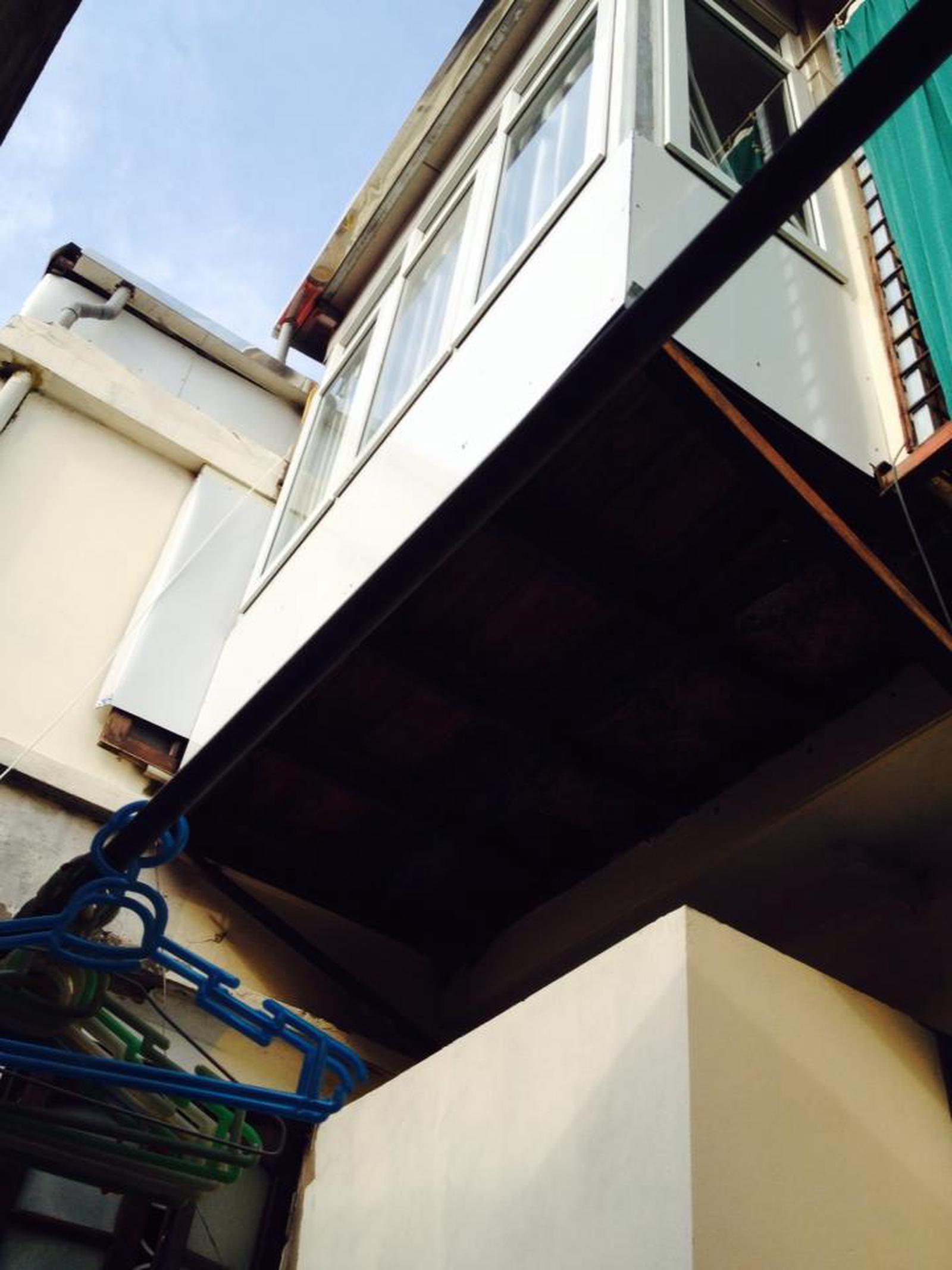 Thực tế, ảnh chụp 8/12/2014 nhìn từ tầng 2 lên thì nhà ông Cương là 3 tầng và cơi nới thêm nhiều lồng sắt ở tầng 3. Ảnh: T.A