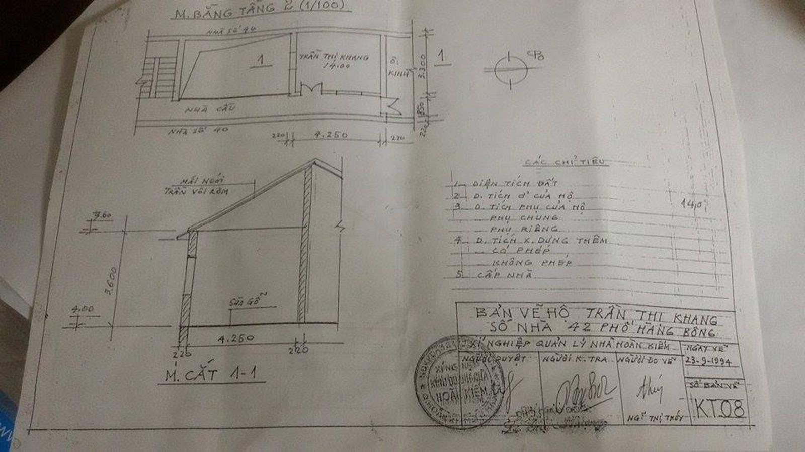 Sơ đồ hiện trạng nhà ông Cương (tức hộ Trần Thị Khang cũ) chỉ có 2 tầng, mái ngói. Ảnh: T.A