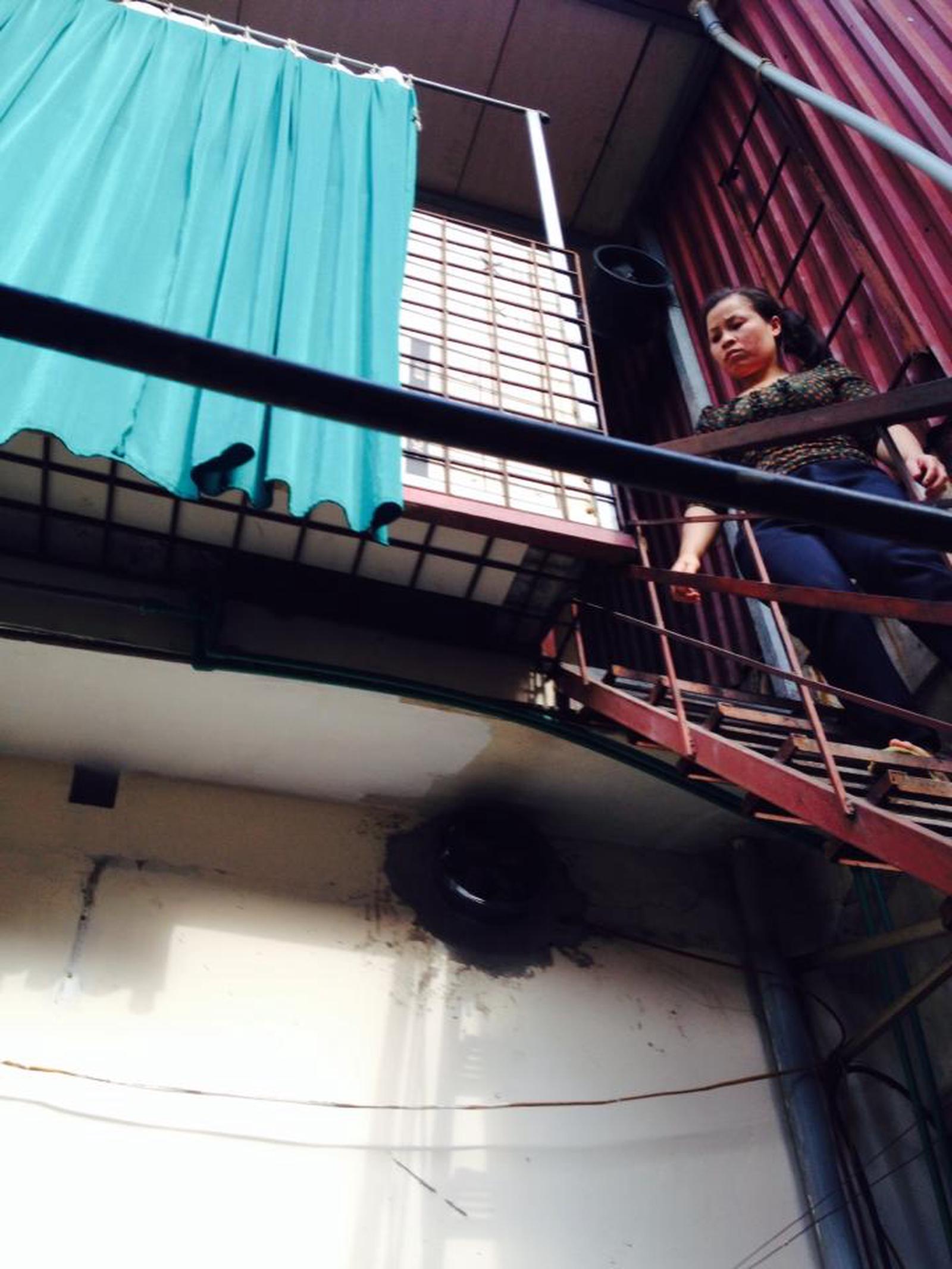 Cầu thang sắt được hộ ông Cương xây dựng từ tầng 2 để lên tầng 3. Ảnh: T.A
