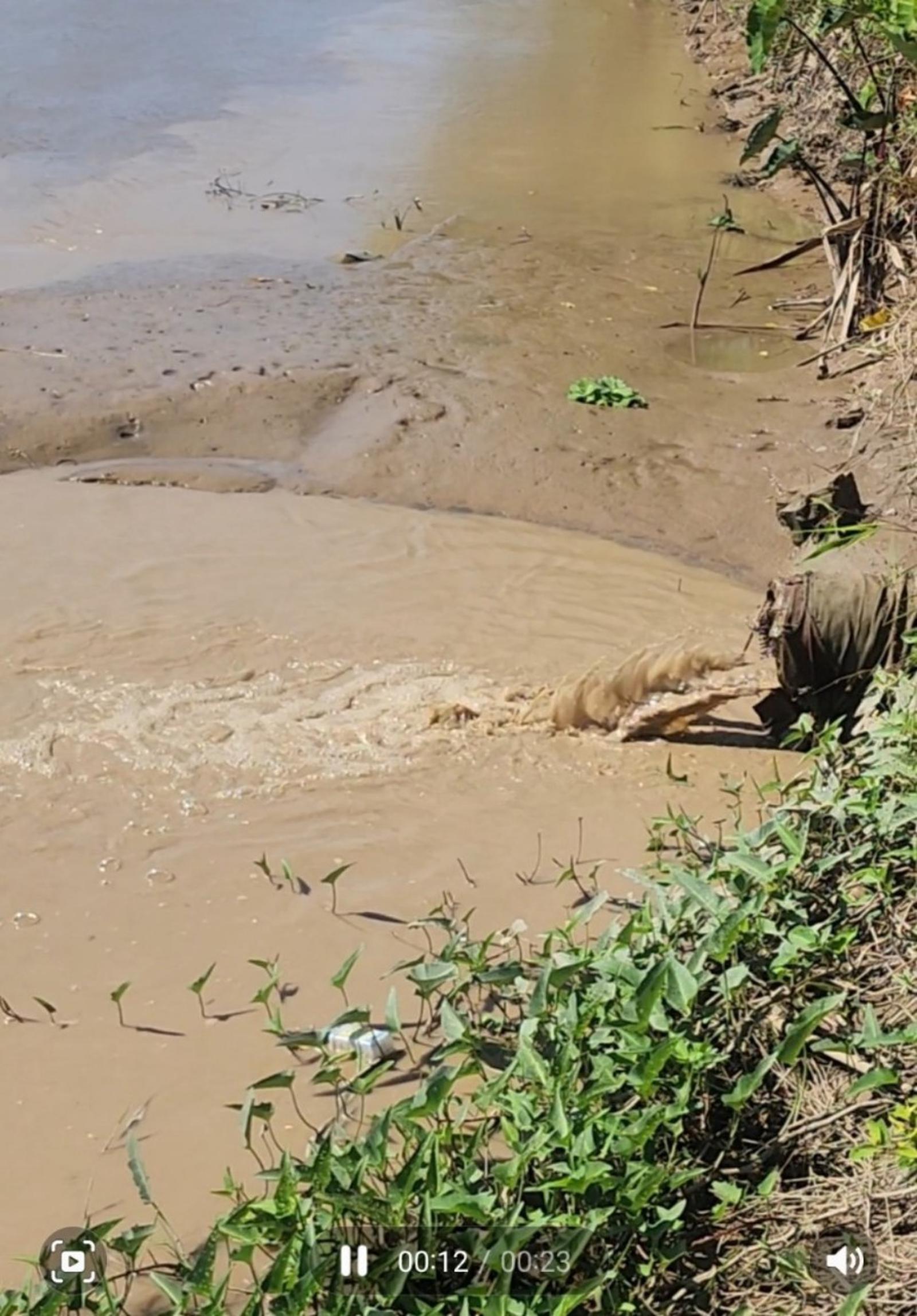 Khoảng 22 giờ 30 phút cùng ngày, chúng tôi tiếp tục quay trở lại hiện trường. Hai chiếc máy hút cát vẫn đang được neo đậu tại hai vị trí như đã phản ánh. Máy đã tắt nhưng đèn cảnh báo vẫn sang. Đường ống, các phương tiện hút cát vẫn còn nguyên vị trí. Nước bùn thải vẫn chảy lênh láng xuống kênh nội đồng xã Nghĩa An.