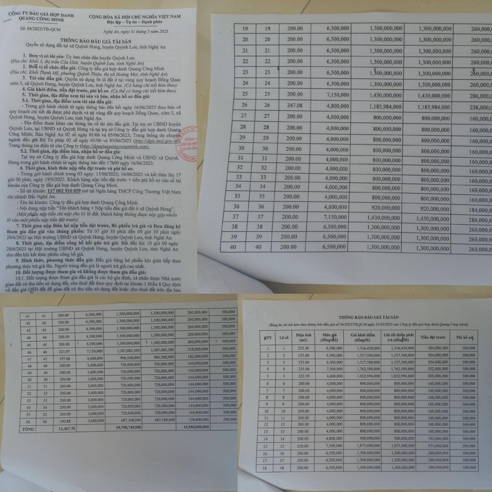 Thực hiện hợp đồng giữa UBND huyện Quỳnh Lưu và Công ty Đấu giá hợp danh Quang Công Minh (Cty Quang Công Minh) về việc đấu giá 56 lô đất ở tại xã Quỳnh Hưng (Quỳnh Lưu), ngày 20/6, tại hội trường UBND xã Quỳnh Hưng đã tổ chức đấu giá số lô đất bằng hình thức bỏ phiếu gián tiếp, với giá trúng đấu giá vượt 42,7% so với giá khởi điểm. Số tiền đấu giá tăng so với giá khởi điểm lô cao nhất là 863 triệu đồng, lô thấp nhất là 200 triệu đồng.