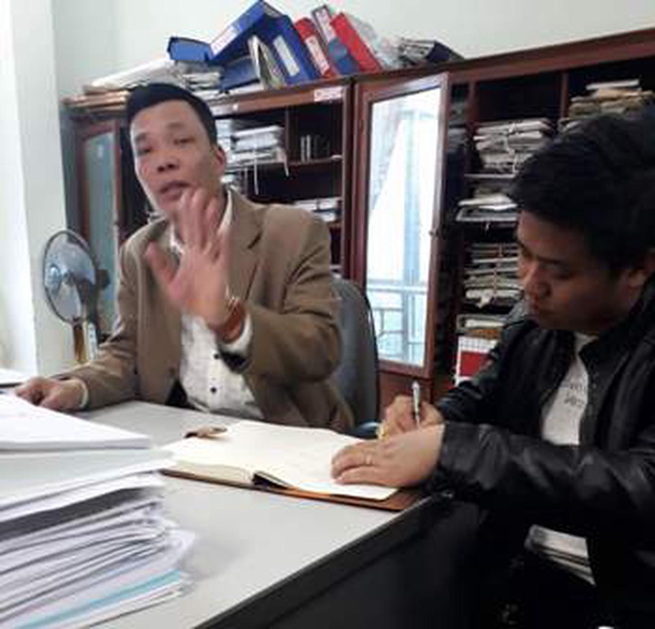 Ông Thái Sơn Vinh, Phó phòng Tài nguyên & Môi trường huyện Đức Thọ trao đổi về bãi cát trái phép. Ảnh: Tăng Thành