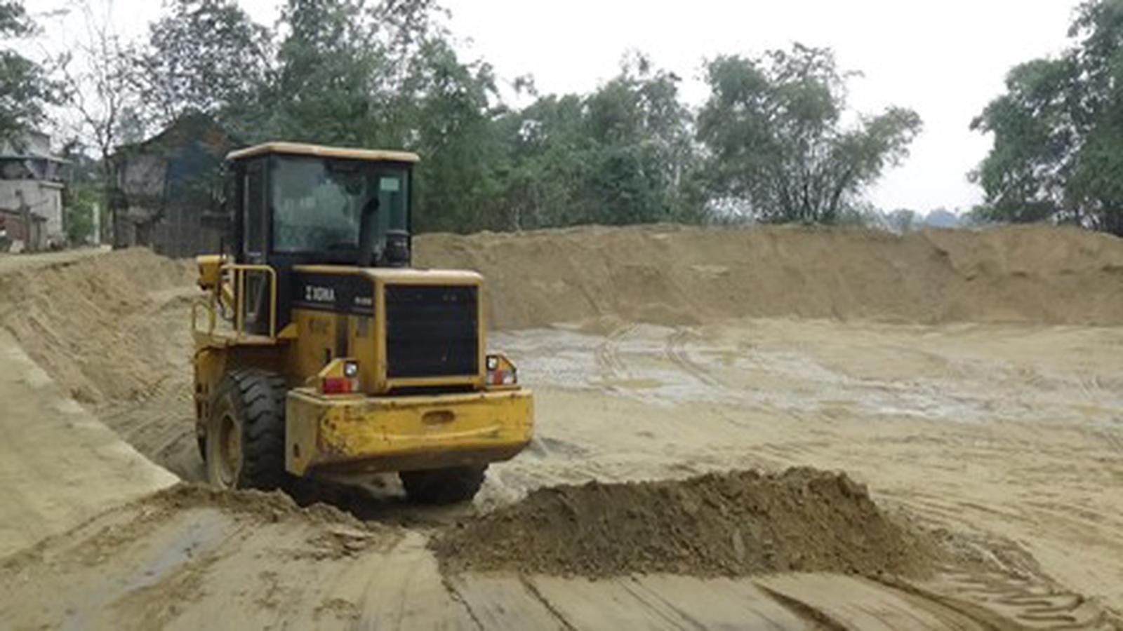 Bãi tập kết cát này của doanh nghiệp tư nhân của bà Trần Thị An tại chân cầu Thọ Tường, thị trấn Đức Thọ.