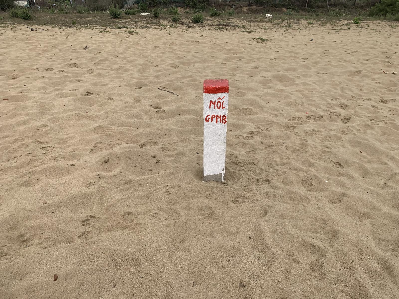 Mốc chỉ giới GPMB được UBND huyện Hoằng Hoá cắm vào giữa khu đất đã giao để triển khai du lịch. Ảnh: Hương Trà