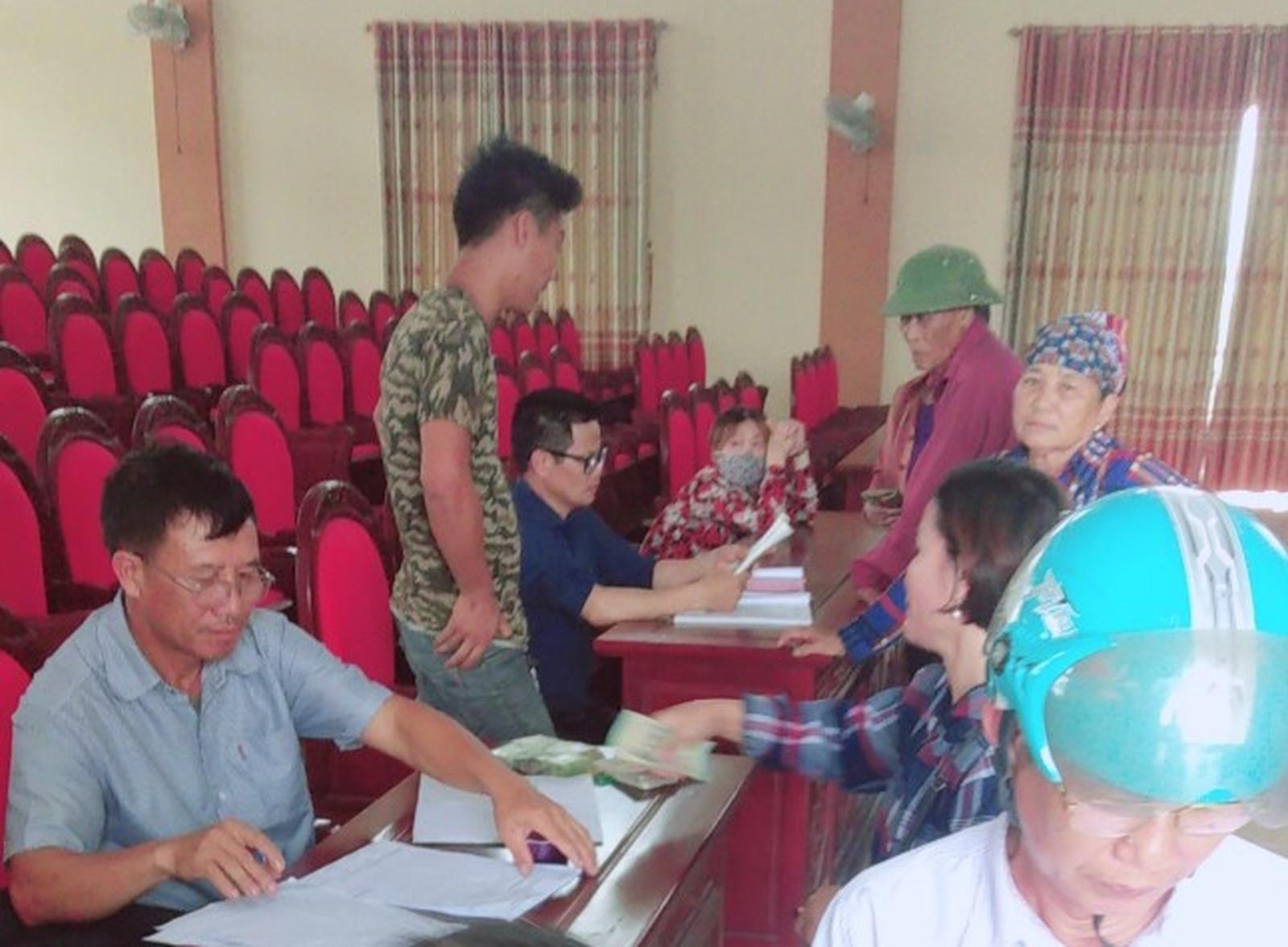 Nhân dân xã Quảng Hợp phấn khởi nhận tiền đền bù thiếu sau phản ánh của Báo Thanh tra. Ảnh: VT