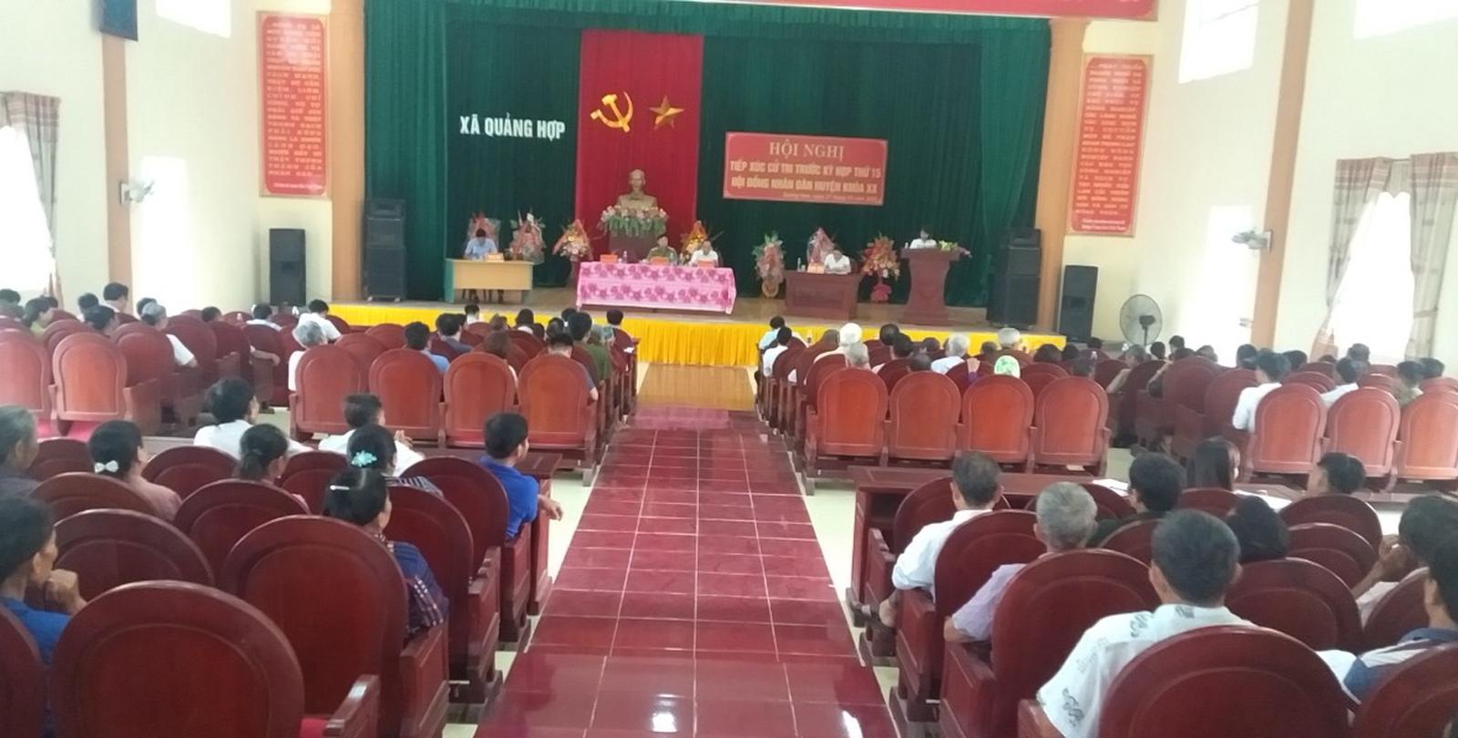Mới đây, ngày 27/5/2020, để ổn định tình hình ở cơ sở, đồng thời nắm bắt tâm tư, nguyện vọng của người dân, ông Trần Anh Chung, Chủ tịch UBND huyện Quảng Xương, đã có buổi tiếp xúc với nhân dân xã Quảng Hợp. Tại hội nghị, ông Chung đã nắm bắt nội dung phản ánh về những bức xúc bấy lâu nay của người dân. Từ đó, đi đến thống nhất, quyết định hỗ trợ nguồn kinh phí khoảng 1,5 tỷ đồng chi trả các khoản đền bù, hỗ trợ trong công tác GPMB thiếu cho các hộ dân. Đồng thời, những nội dung bà con nhân dân phản ánh sẽ được ghi nhận, tiếp tục cho các ngành rà soát đúng sai và sẽ có trả lời khi có kết quả.