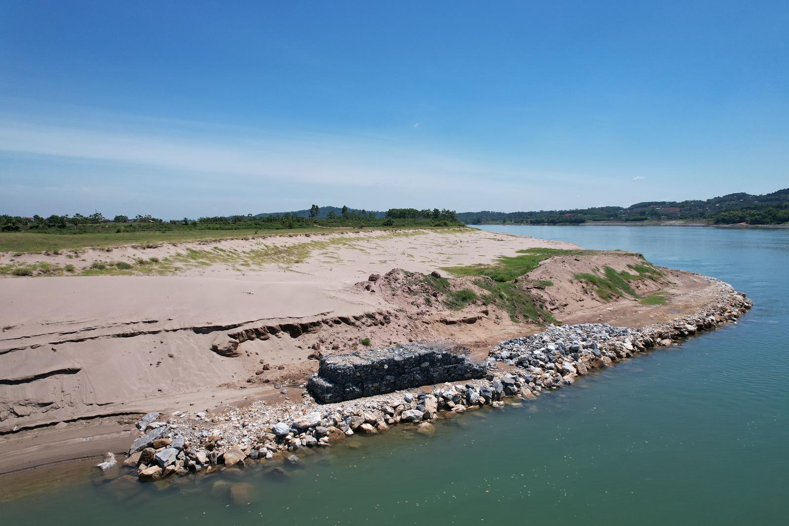Người dân tại xã Đồng Trung, huyện Thanh Thủy đã tự ý thực hiện xây kè mấy trăm mét sông Đà nhưng không hề bị xử lý. Ảnh: ND
