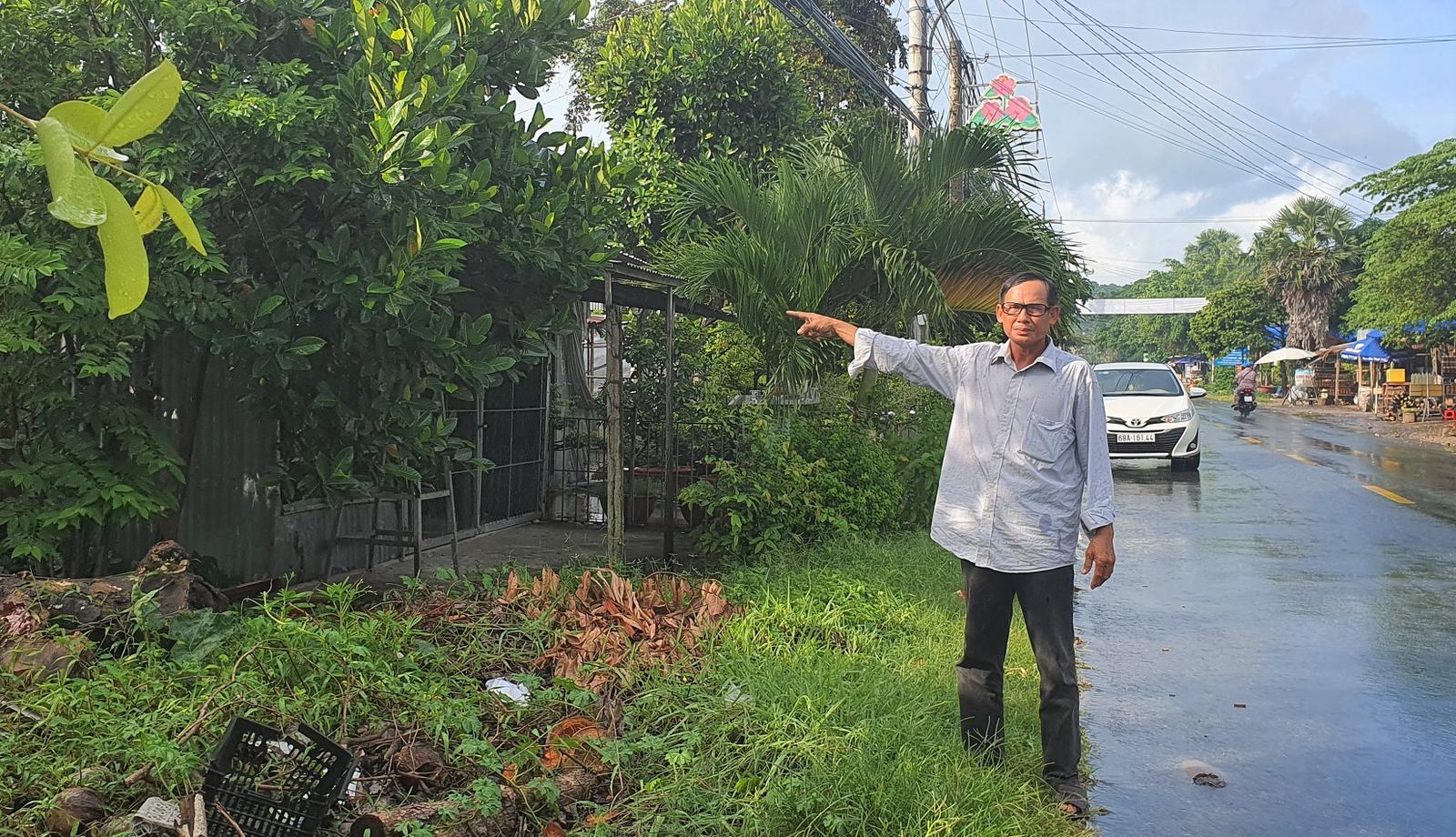 Người thân của bà Ngô Thị Xuyến bên phần đất đang tranh chấp. Ảnh: Chu Tuấn