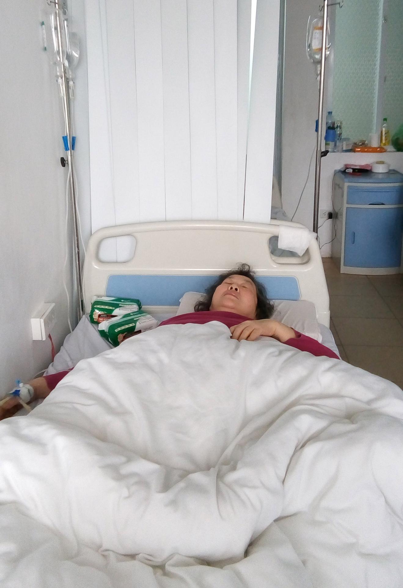 Bệnh nhân đau đớn do liên tục phải truyền kháng sinh liều cao (ảnh chụp ngày 1/1/2018). Ảnh: Thanh Linh