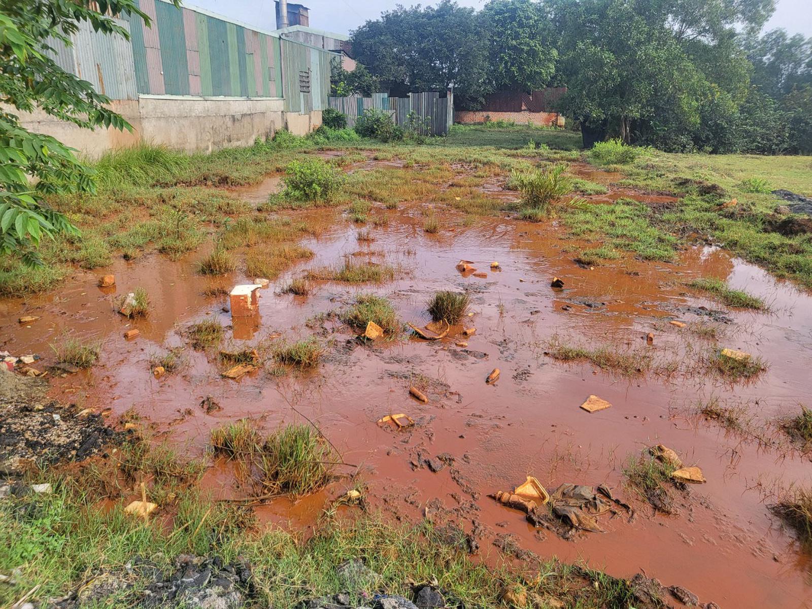 Vũng nước “lạ” bốc mùi hôi thối, tanh nồng rất khó chịu bên cạnh xưởng nhuộm