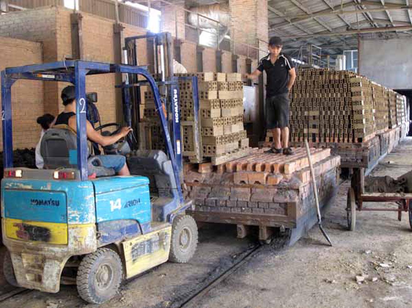 Nhà máy Gạch Mai Thái không có vùng nguyên liệu sét sản xuất gạch nhưng vẫn có sản phẩm ra lò. Ảnh: HB