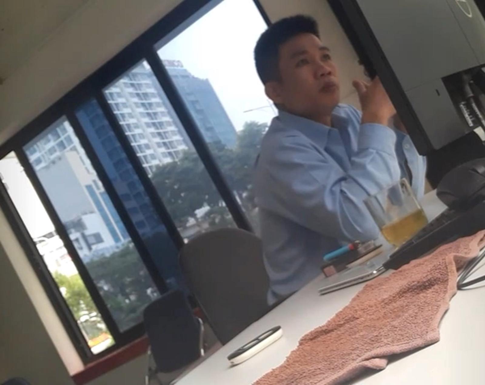 Cũng tại Ban Quản lý dự án đầu tư xây dựng quận Đống Đa, phóng viên đã vô tình gặp ông Nguyễn Hoàng Hà, Phó Giám đốc Ban Quản lý dự án đầu tư xây dựng quận Đống Đa tay đút quần đi ở hành lang.