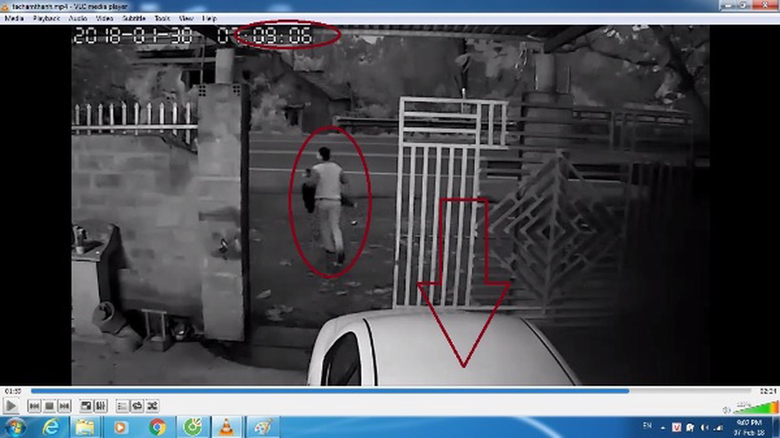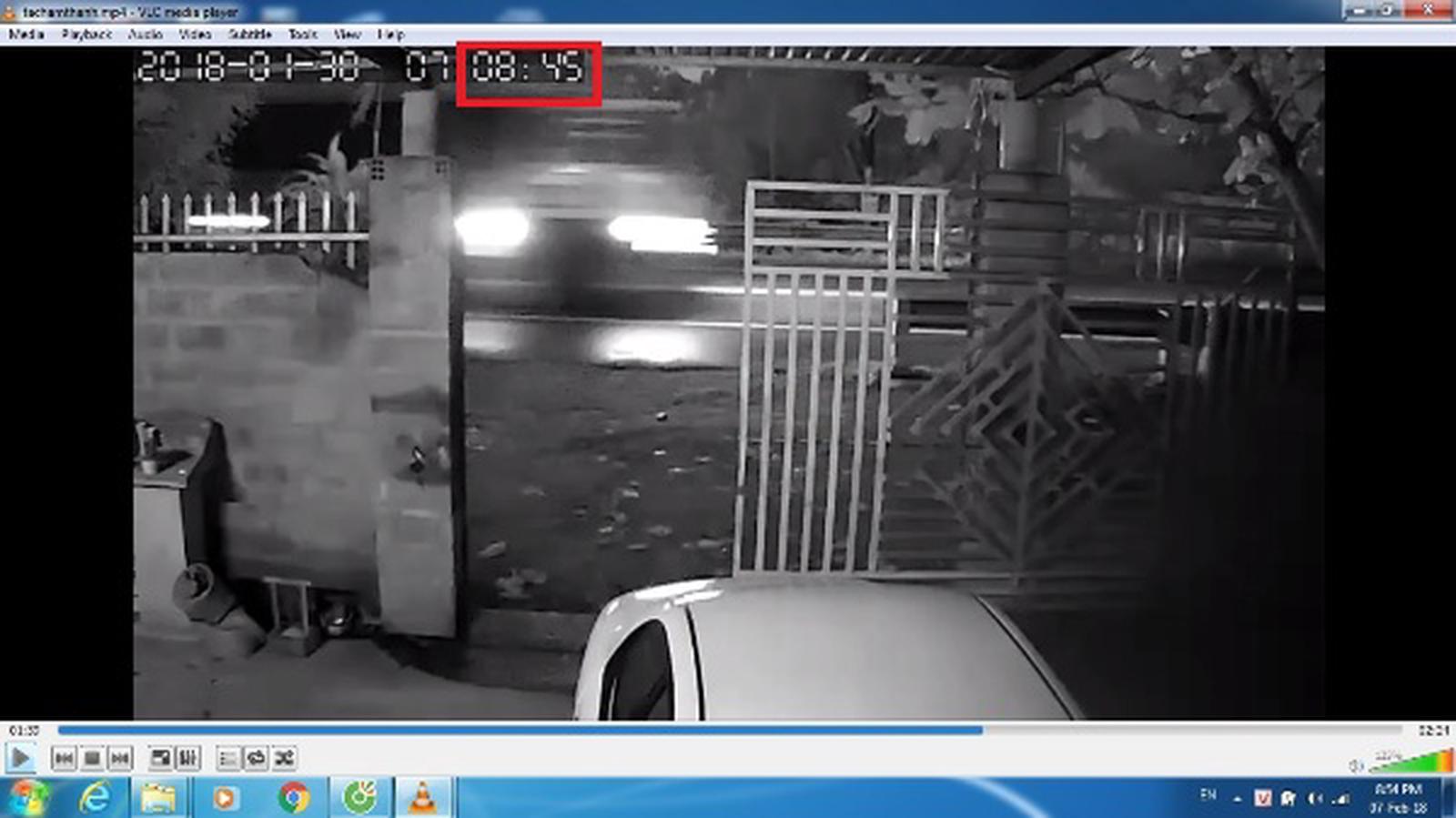Ông Thảo bóp còi là giây thứ 40 cũng là điểm anh Ba ngã xuống cho đến cổng anh Tiến là 20m và đồng hồ chỉ ở giây 45. Ảnh: Trích từ camera