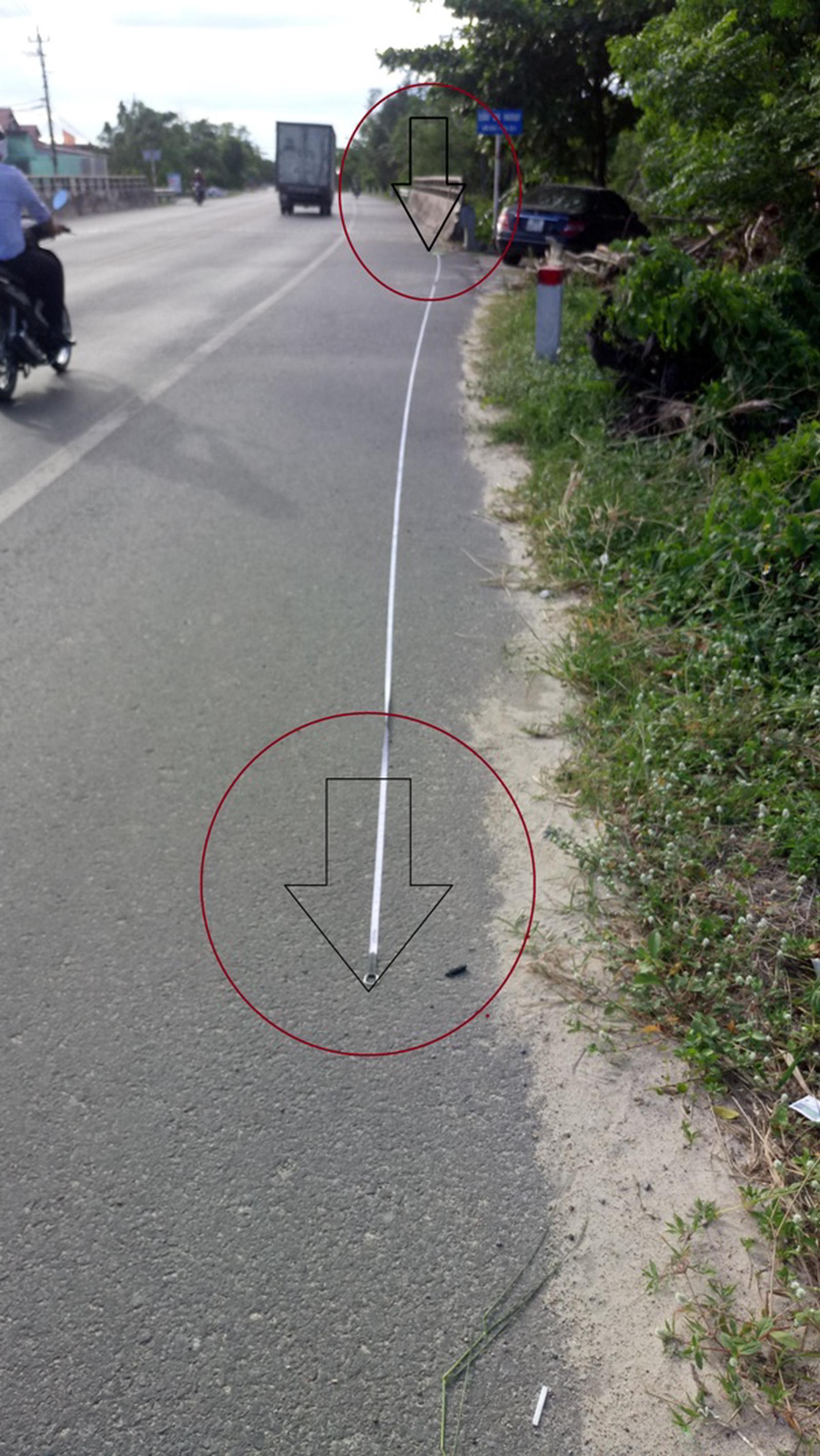 Từ điểm anh Ba ngã xuống đường cho đến tim đường nhà anh Tiến nơi đặt camera là 20m. Ảnh: Cao Cường
