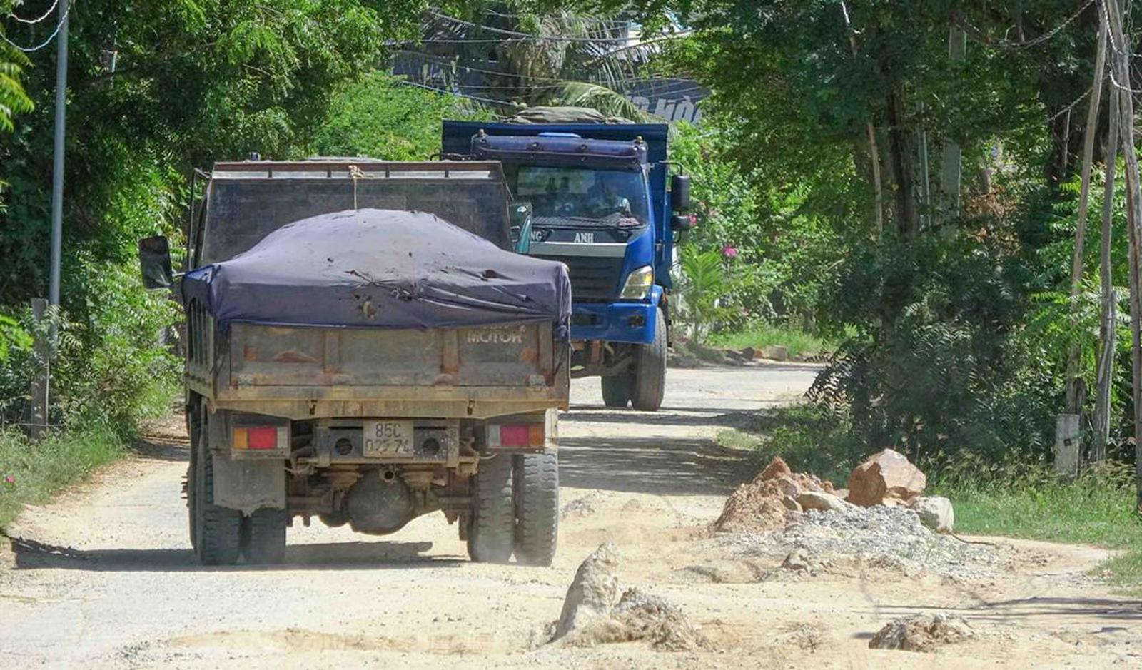Tuyến đường nông thôn oằn mình “gánh” xe tải trọng lớn. Ảnh: Khoa Lê