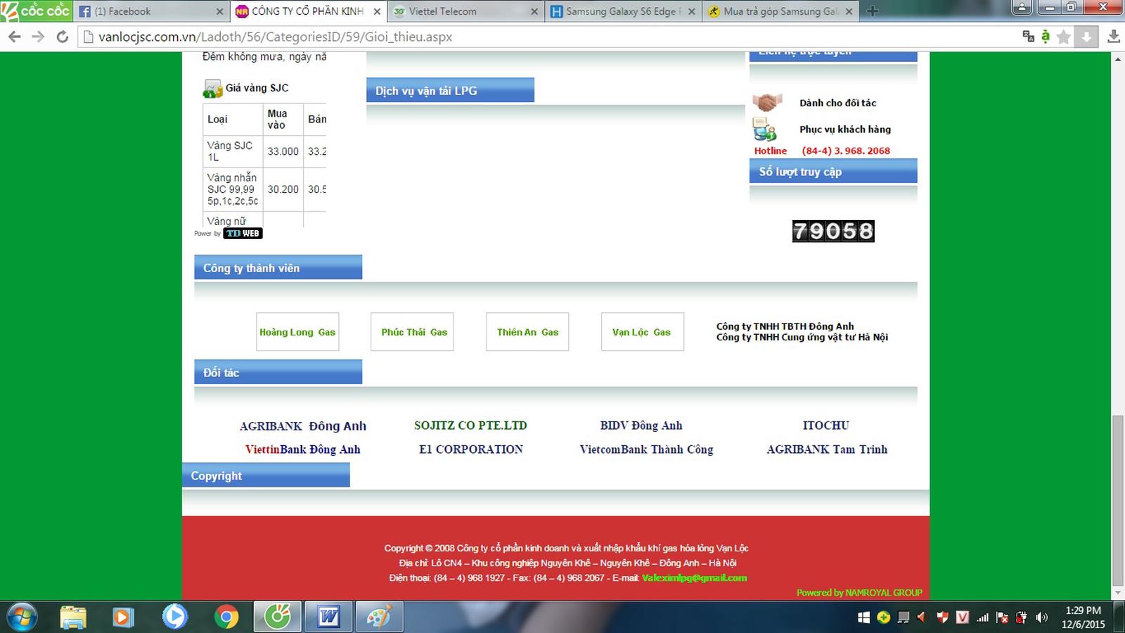 Gas Hoàng Long là một thương hiệu được treo trên website của Công ty Gas Vạn Lộc. Ảnh: chụp từ màn hình