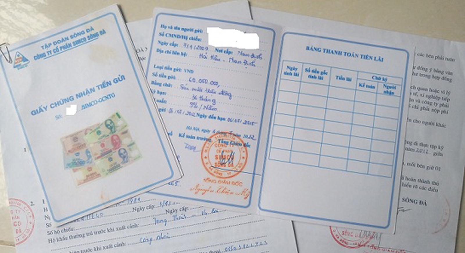 "Giấy chứng nhận tiền gửi" do Công ty Simco phát hành. Ảnh TH