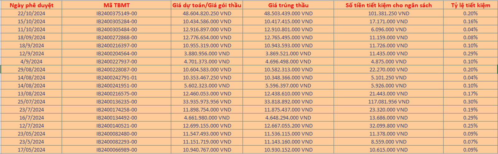 Tuy nhiên, mở rộng thêm các gói thầu do UBND huyện Hương Khê làm chủ đầu tư trong 10 tháng đầu năm 2024 có thể thấy, đa số những gói thầu xây lắp có giá trị lên đến nhiều tỷ đồng đều ghi nhận đơn vị trúng thầu sát giá, thậm chí hiếm hoi có gói thầu nào ghi nhận tỷ lệ tiết kiệm vượt quá 0,3%.