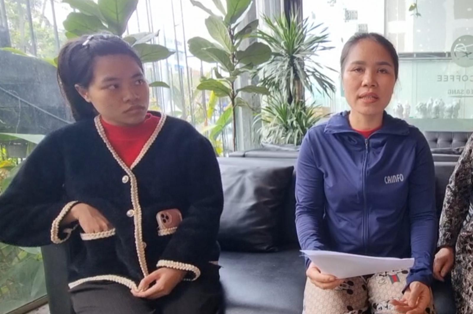 Bà Lê Thị Yến (áo xanh, bên phải ảnh) khẳng định chữ ký trong đơn đề nghị là giả mạo. Ảnh: Thanh Hoa