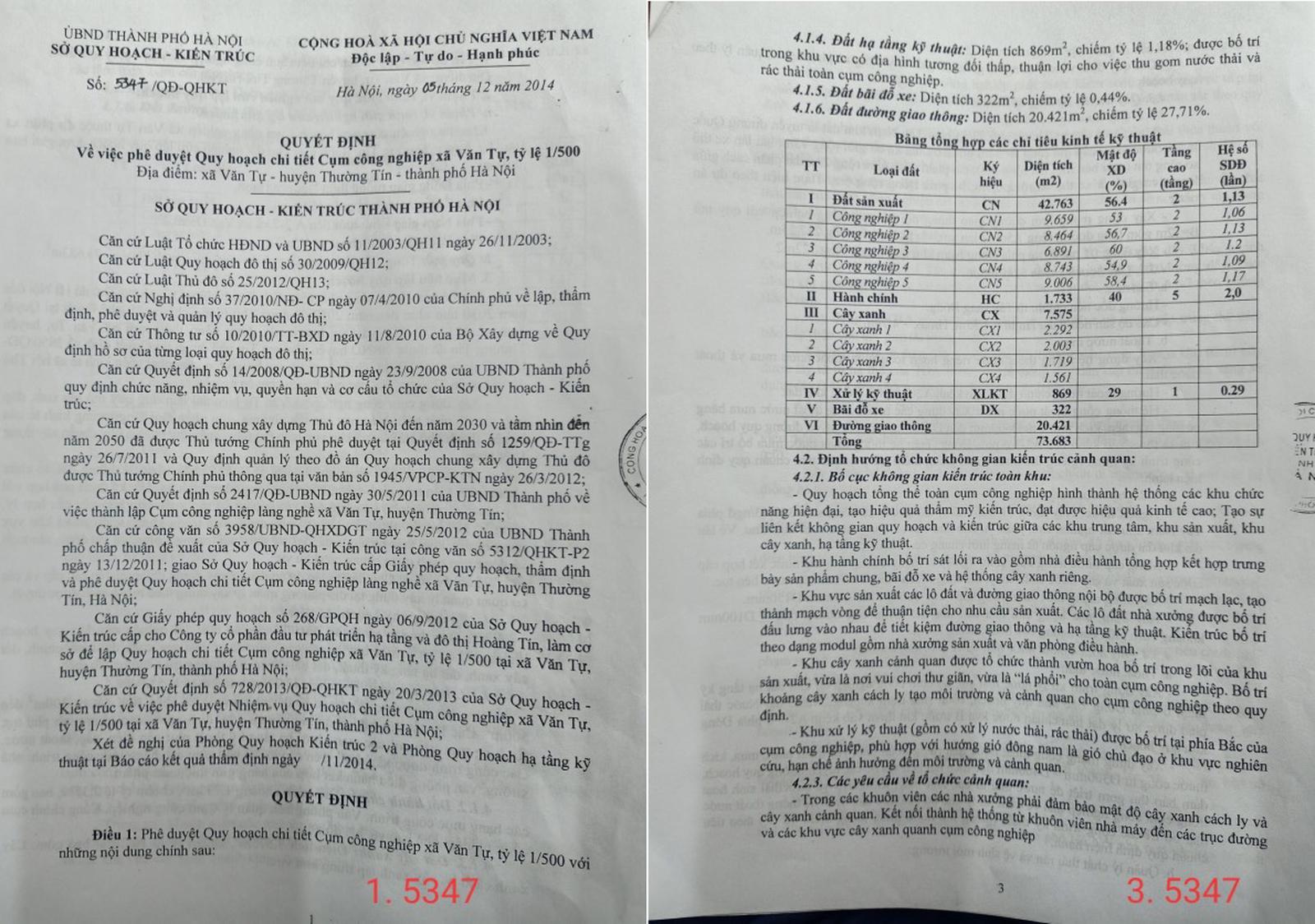 Quyết định số 5716/QĐ-UBND ngày 28/9/2018 của UBND TP Hà Nội chấp thuận cho phép Liên danh Công ty Cổ phần Đầu tư phát triển hạ tầng và đô thị Hoàng Tín, Công ty Cổ phần Giao thông Hồng Hà thuê 72.423,4m2 đất tại xã Văn Tự để thực hiện Dự án Cụm Công nghiệp Làng nghề.