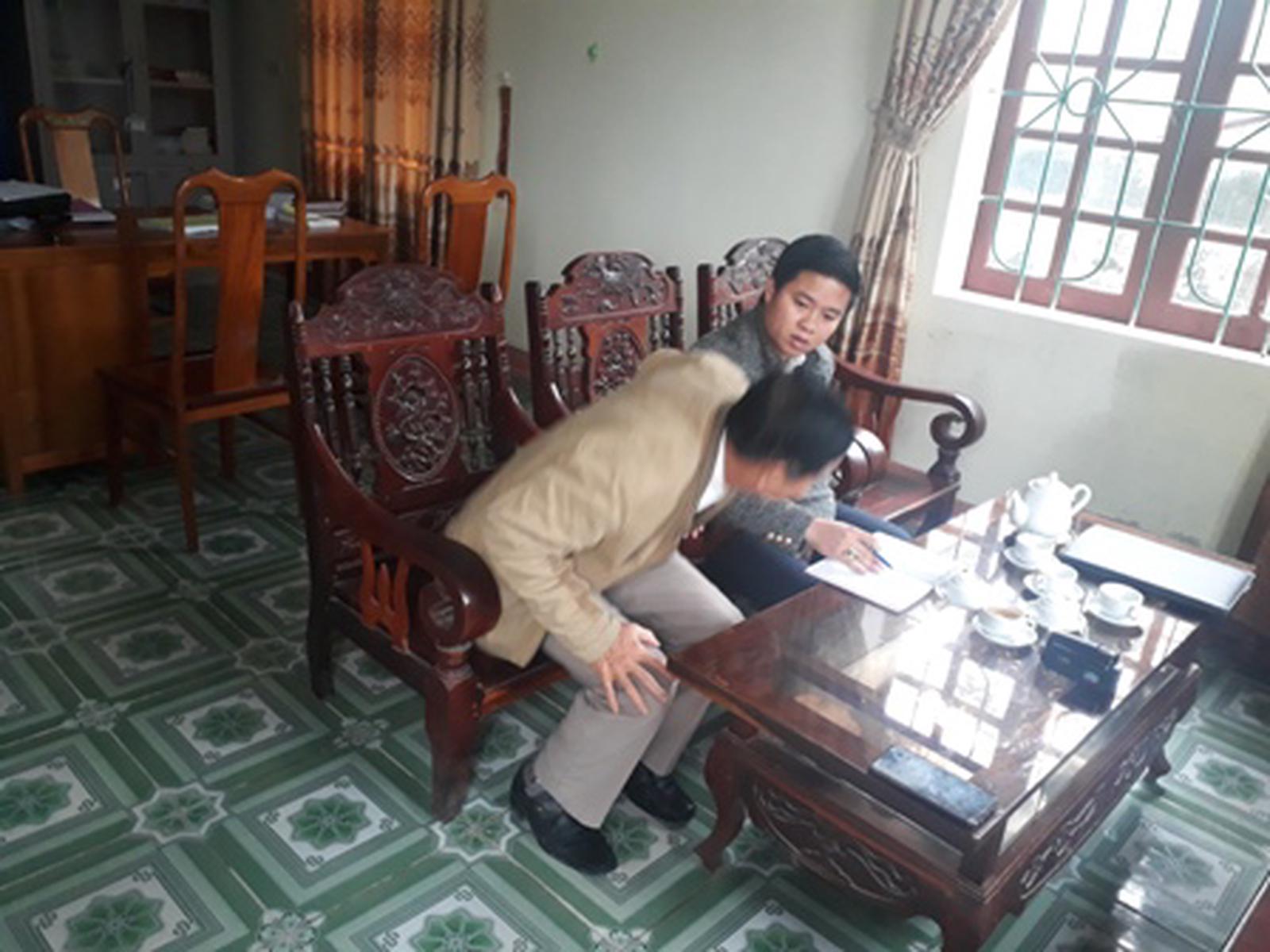 Sau khi được chỉ dẫn vòng vo, phóng viên trực tiếp xuống Văn phòng của UBND xã thì được ông Vũ Đăng Tịnh, phụ trách Văn phòng cho biết, "đã hết hồ sơ và bản thân không được giao bán hồ sơ. Lãnh đạo có dặn nếu ai đến mua hồ sơ thì gọi vào số điện thoại 0912623068" (số điện thoại này đã được viết sẵn bỏ ngay trên bàn làm việc của ông Tịnh). Khi được hỏi số điện thoại này là của ai, ông Tịnh cho biết đây là số ông Kỷ - nhà thầu (người được cho là đã trúng gói thầu trên và đã mua hồ sơ thầu).