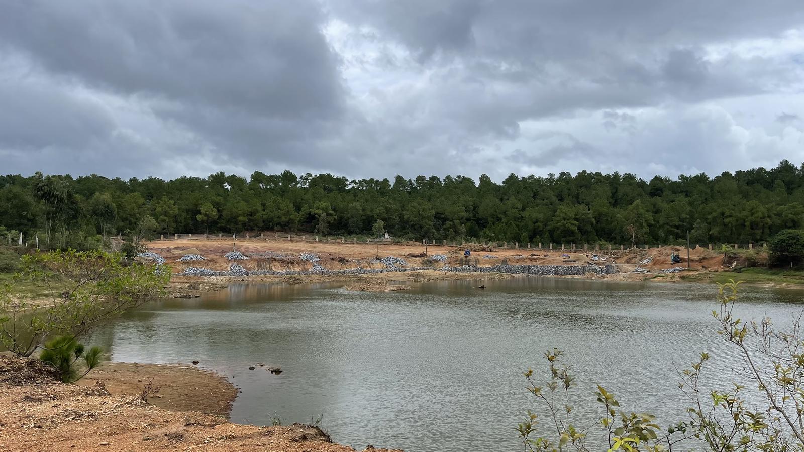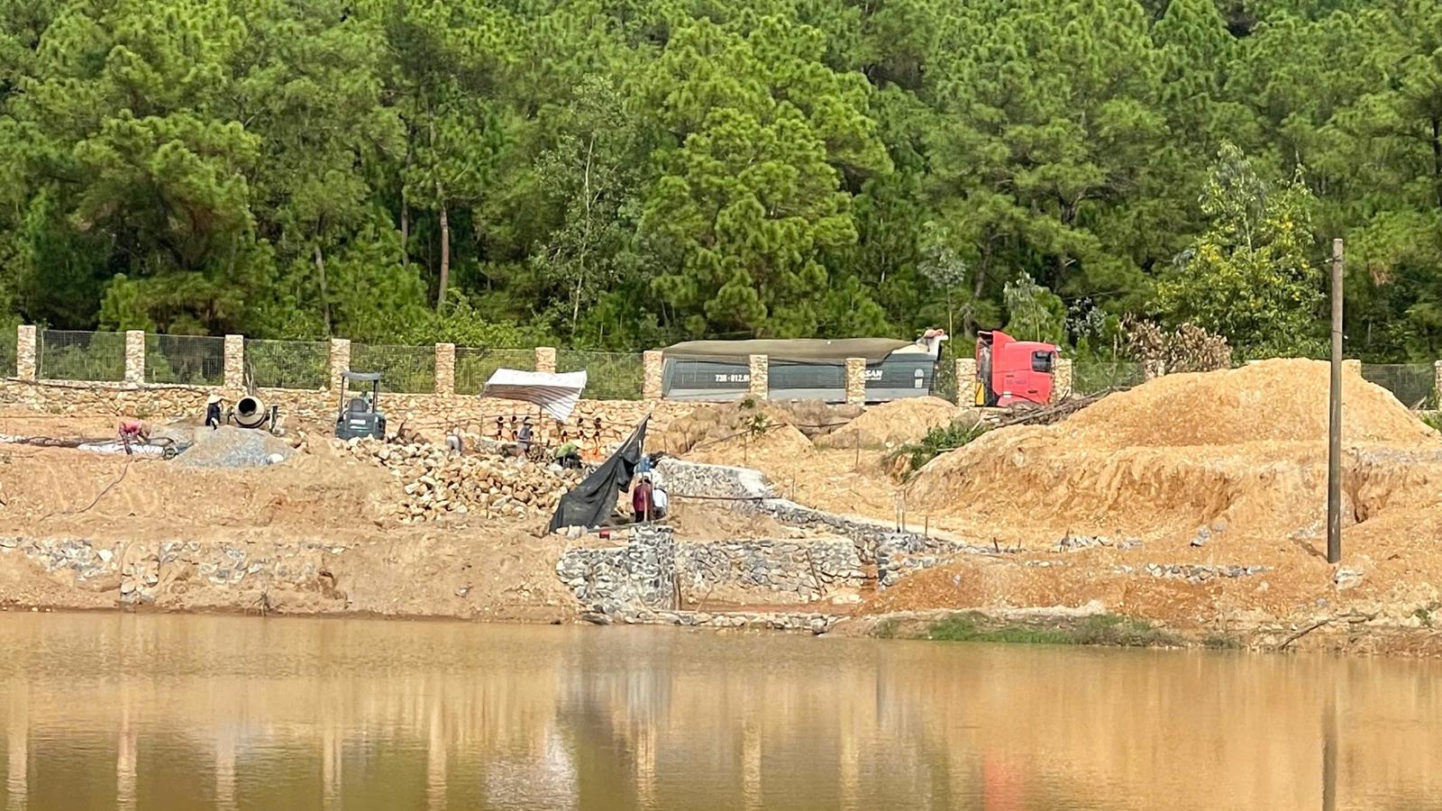 Tại khu vực đất rừng sản xuất có diện tích hàng nghìn mét vuông, phía trên tiếp giáp với rừng thông và phía dưới tiếp giáp với Hồ Trằm, hộ dân này đã tiến hành xây dựng hàng trăm mét tường rào bằng đá cuội cao khoảng 1m, có trụ và thép B40 bao quanh diện tích đất rừng trên. Phía tiếp giáp Hồ Trằm, hộ dân này xây dựng khoảng 100m kè bằng đá hộc màu xanh có trụ kiên cố, phần kè này được xây lấn xuống một diện tích khá lớn lòng Hồ Trằm. Được biết, Hồ Trằm là hồ thuỷ lợi chuyên cung cấp nước phục vụ sản xuất cho hàng chục hecta lúa do UBND xã Quảng Thanh quản lý.