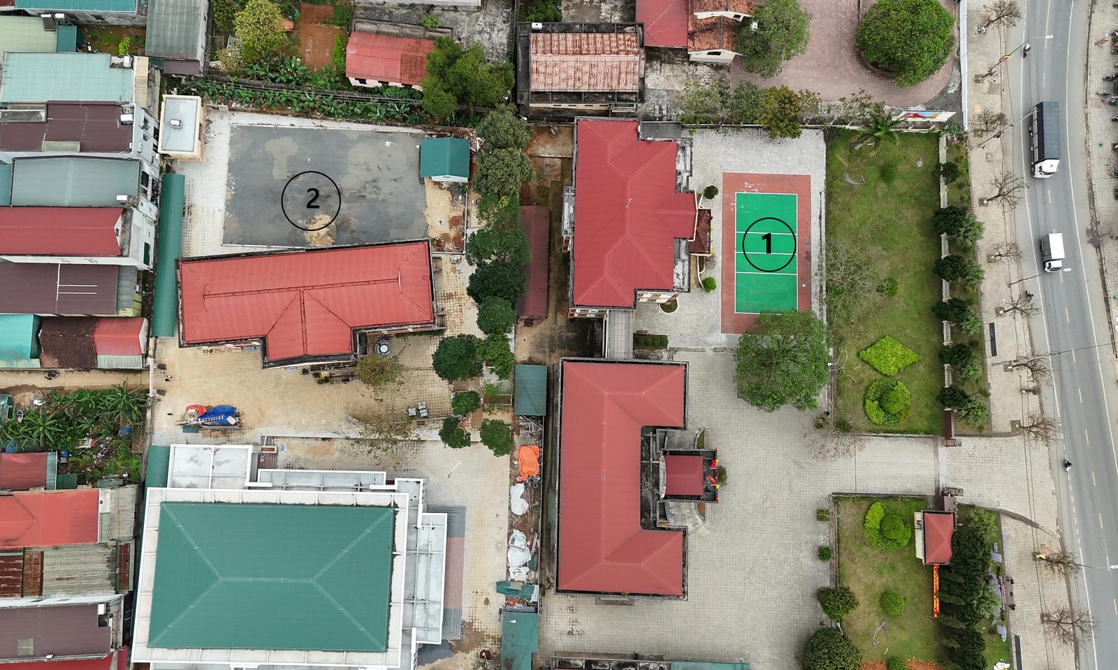 Dù phía trước đã có sân thể thao (1) nhưng huyện nghèo Hướng Hóa vẫn tiếp tục đầu tư thêm sân tennis (2) từ nguồn ngân sách. Ảnh: Minh Tân