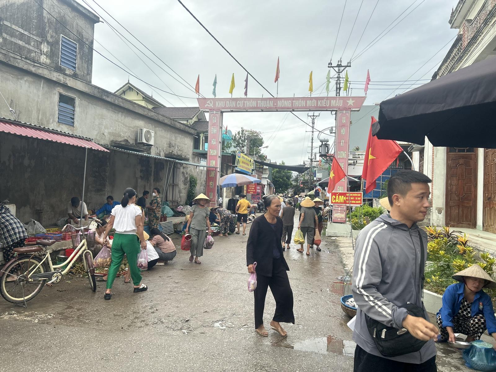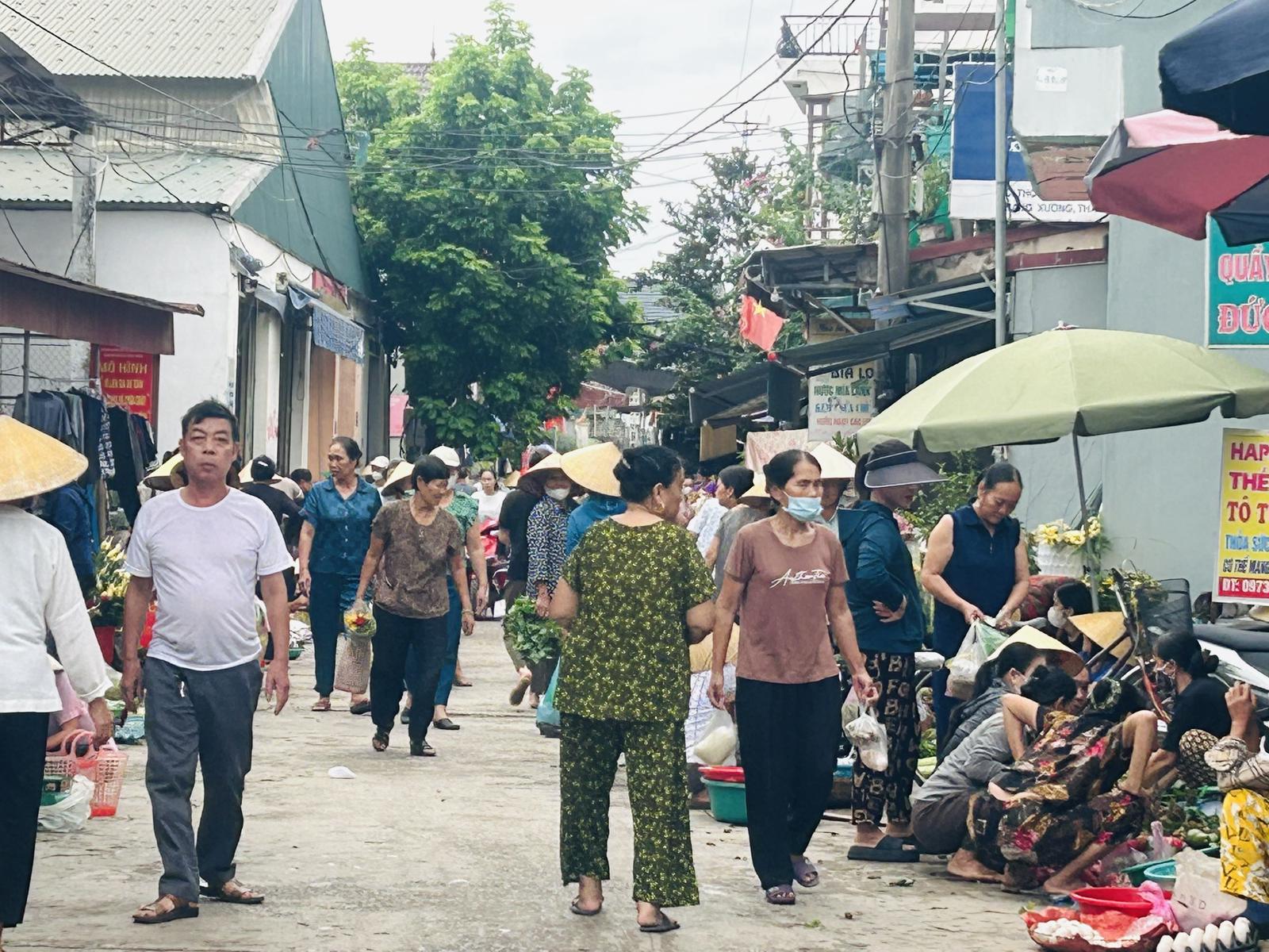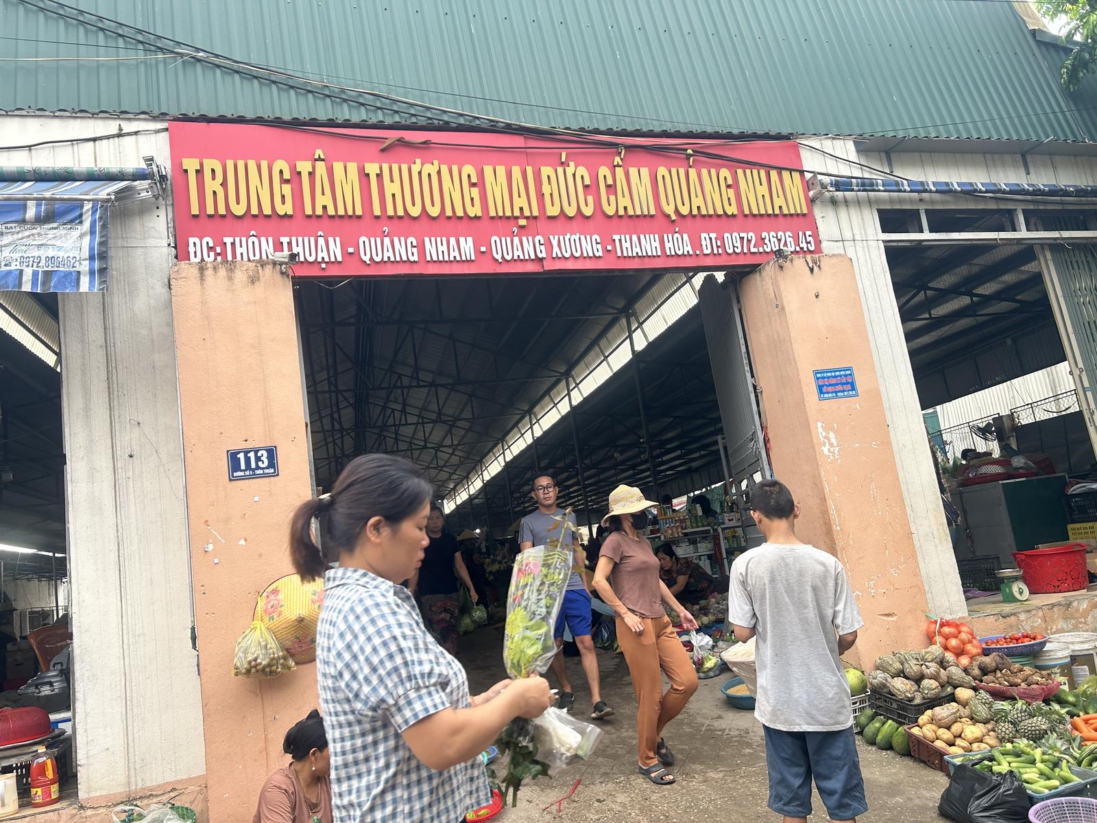 Trung tâm Thương mại Đức Cẩm tại thôn Thuận có rất nhiều người thuê ngồi bán các mặt hàng nhu yếu phẩm. Ảnh: Hương Trà