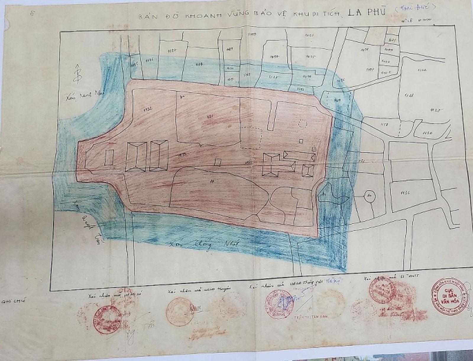 Bản đồ khoanh vùng bảo vệ cụm di tích cấp quốc gia đình - chùa La Phù. Ảnh: TQ