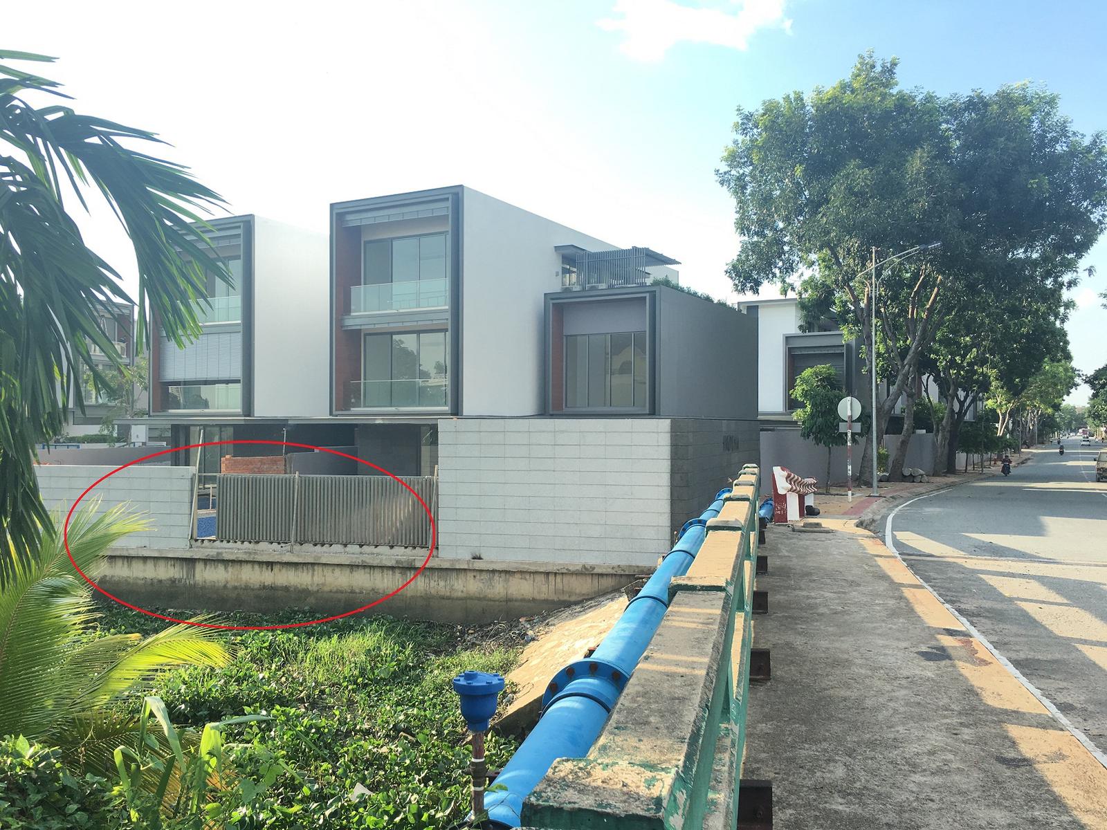 Theo quan sát tại hiện trường, vào cuối giờ chiều ngày 15/6, hai công trình xây dựng sai phép “nhìn giống” hồ bơi tại 2 căn biệt thự nằm sát rạch Ông Hóa hiện vẫn chưa được tháo dỡ. Ngoài ra, vẫn còn tình trạng nhiều công nhân gấp rút thi công các hạng mục trong dự án.