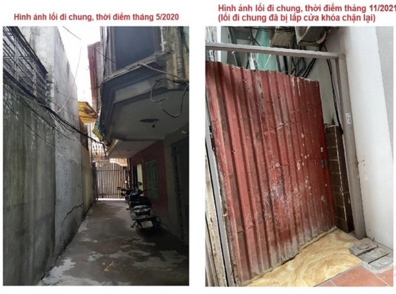 Hiện trạng ngách 35, ngõ 24 phố Đặng Tiến Đông trước và sau khi gia đình bà Phạm Hải Vinh được Sở TN&MT cấp GCNQSDĐ. Ảnh: LQV