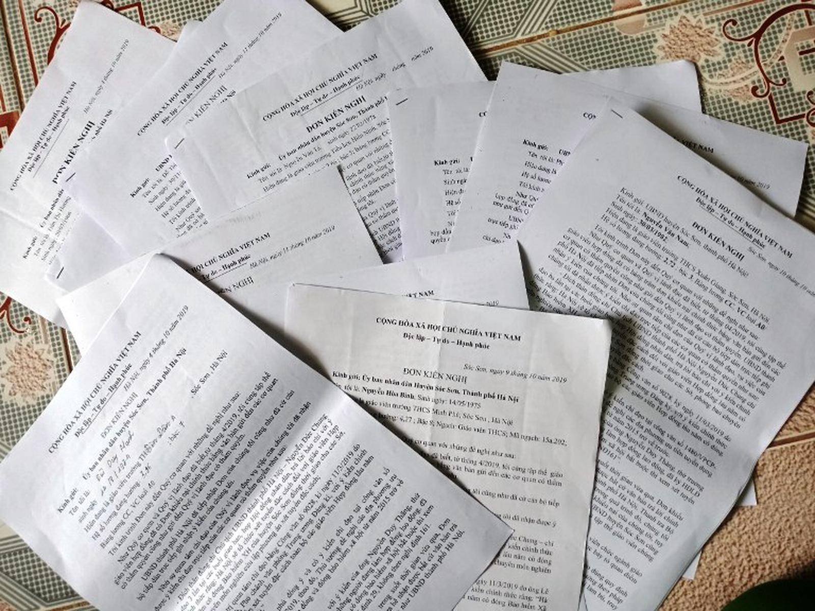 Nhiều lá đơn kiến nghị được gửi đi, nhưng đến nay GVHĐ ở Sóc Sơn vẫn chưa nhận được câu trả lời thỏa đáng. Cái họ nhận được là... thông báo chấm dứt hợp đồng. Ảnh: HH