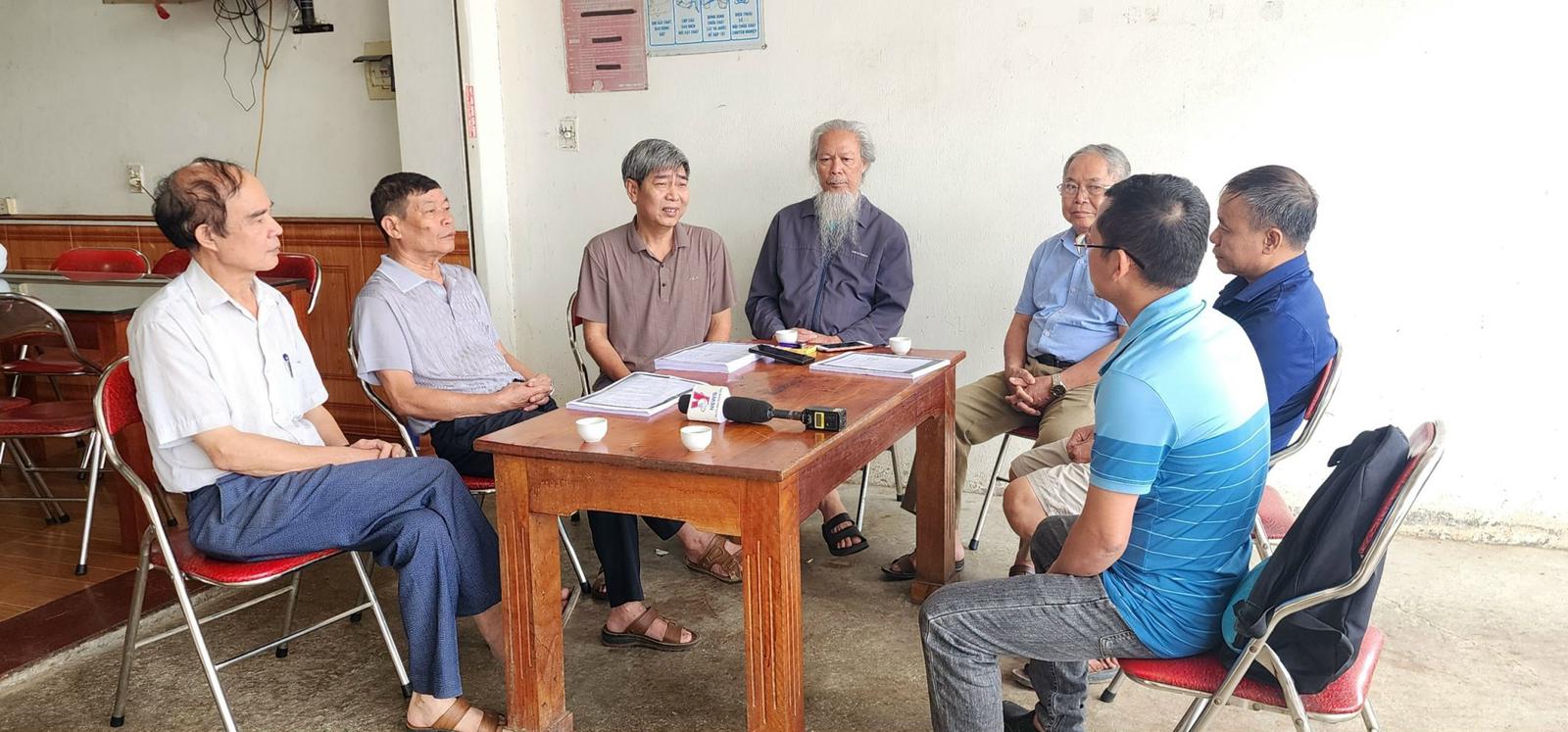 Ông Nguyễn Công Khoan và những người liên quan trao đổi với phóng viên