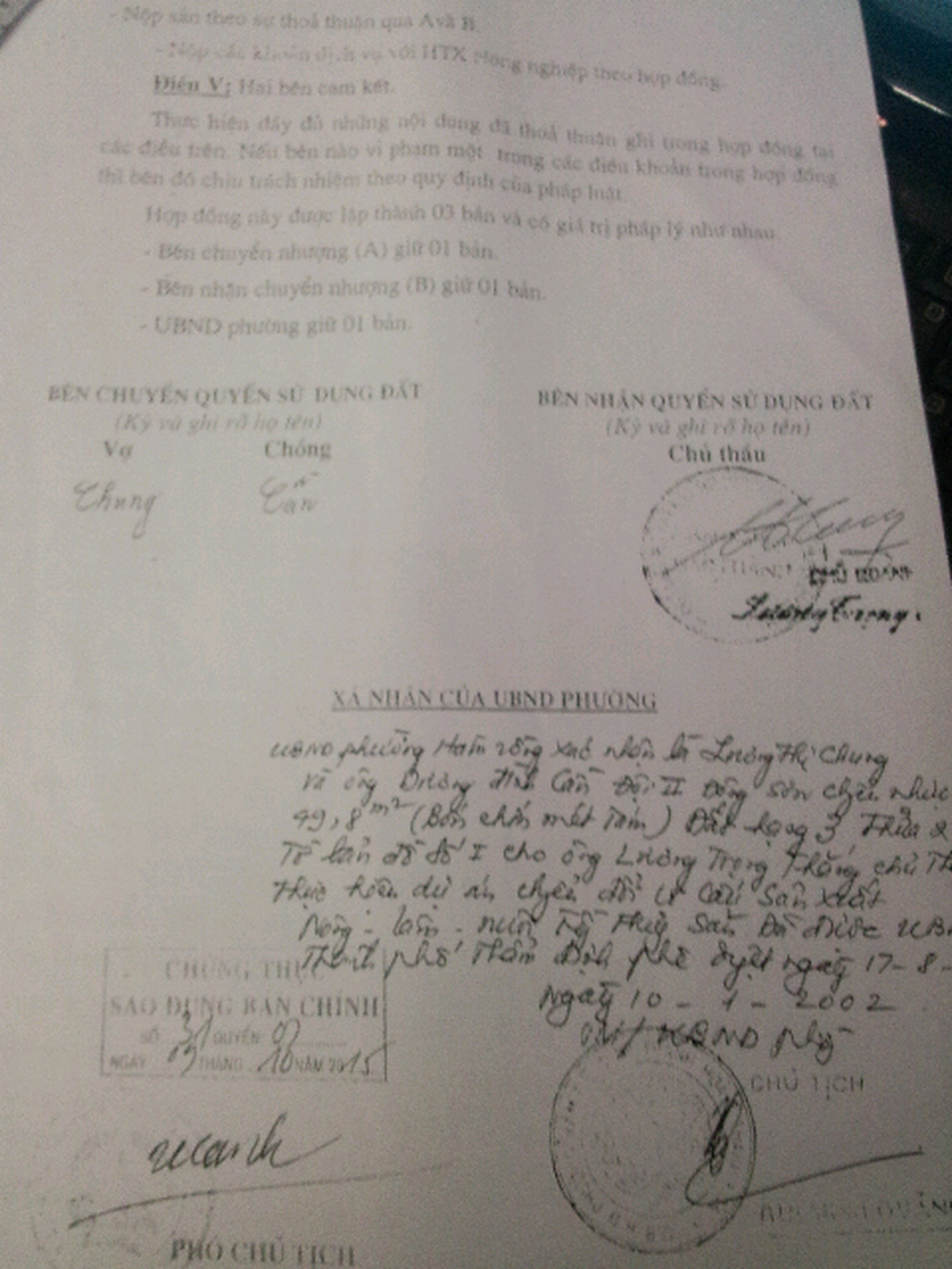 Trong hợp đồng chuyển nhượng có xác nhận của chính quyền địa phương. Ảnh: Văn Thanh