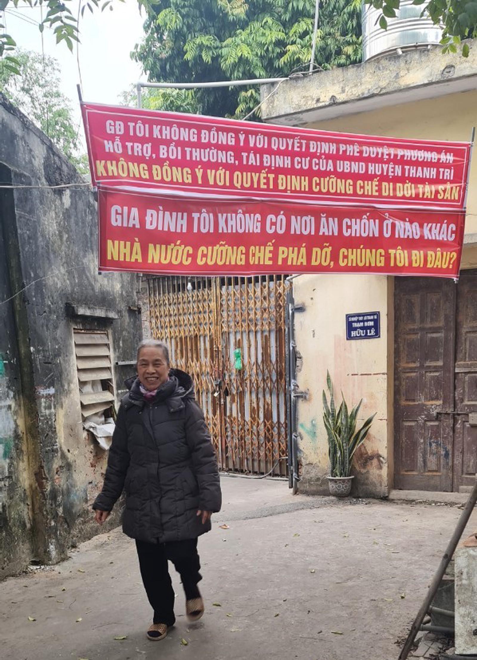 “Chúng tôi đều hiểu rằng dự án cải tạo, nâng cấp tuyến đường từ cầu Hữu Hòa đến hết địa phận huyện Thanh Trì góp phần quan trọng vào sự phát triển của quê hương nên dù có phải thay đổi, xáo trộn đời sống gia đình riêng thì cũng đồng lòng ủng hộ. Tuy nhiên, đến ngày 23/1/2022, chúng tôi lại nhận được quyết định (từ số 9134 đến 9157 ghi ngày 30/12/2021) của UBND huyện Thanh Trì về việc phê duyệt phương án bồi thường, hỗ trợ tái định cư với nội dung khác biệt so với phương án ban đầu. Theo phương án này, chúng tôi không được hỗ trợ để mua đất tái định cư, không còn nơi ăn chốn ở. Không đồng ý với phương án bồi thường này, chúng tôi đã khiếu nại đến UBND huyện Thanh Trì. Tuy nhiên, đến nay vẫn không nhận được quyết định giải quyết khiếu nại của UBND huyện Thanh Trì mà là quyết định cưỡng chế phá dỡ”, bà Toe bức xúc.