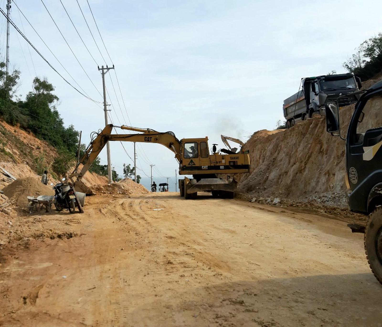 Theo quan sát của chúng tôi, hiện nay đơn vị thi công đang cho xe lu đất mặt đường; chen vào đó, công trình không thi công một bên đường cố định mà lại thi công theo kiểu tiện đâu làm đó. Một bên đường đào khoét núi để mở rộng mặt bằng đường, một bên đường đang múc đào đất, thi công ngổn ngang không chừa khoảng trống cho người dân địa phương qua lại mỗi ngày.