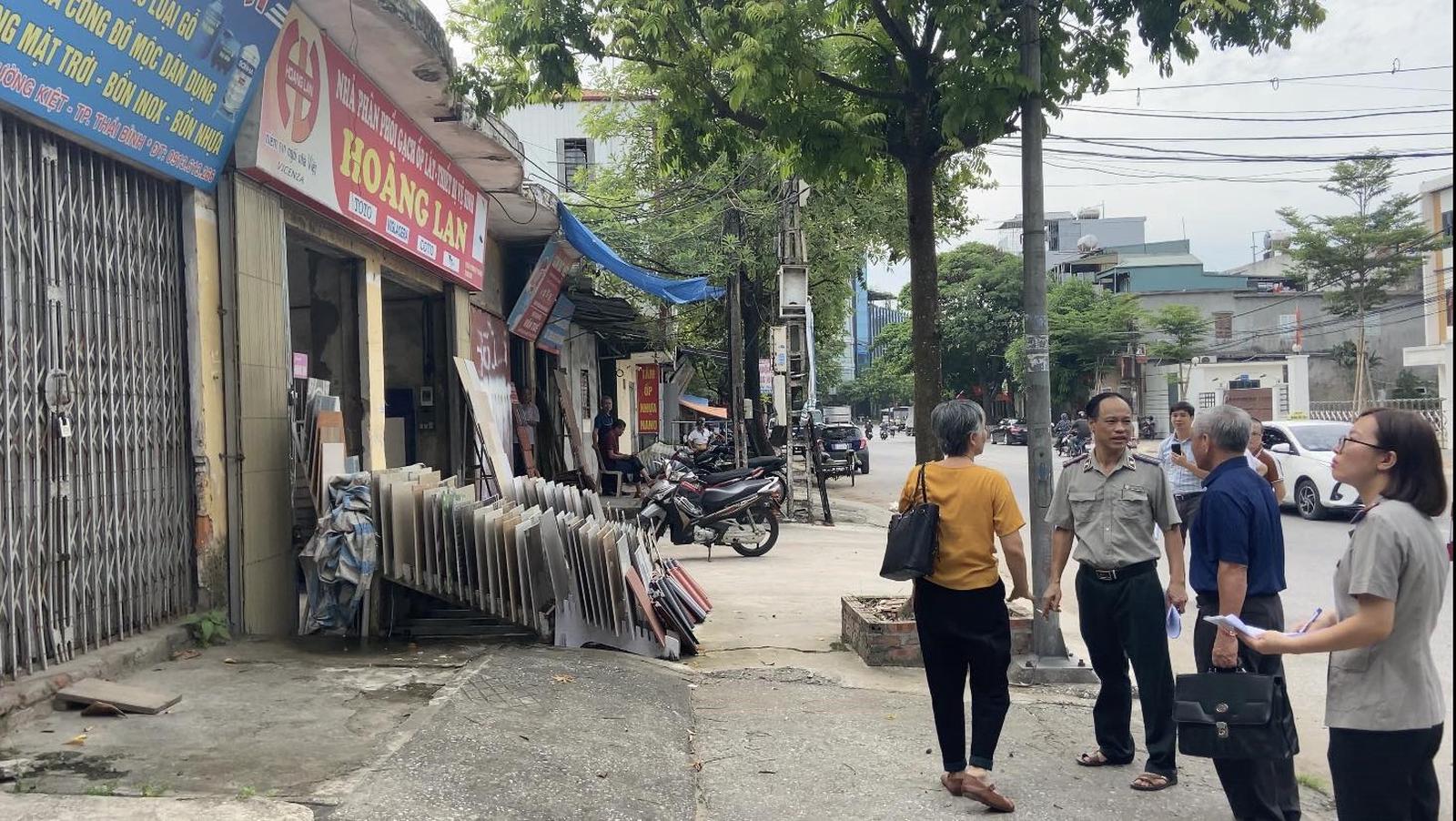 Đoàn công tác của Cục THA dân sự tỉnh Thái Bình tiến hành xác minh THA tại kho phân bón thành phố, đường Trần Quang Khải. Ảnh: LP
